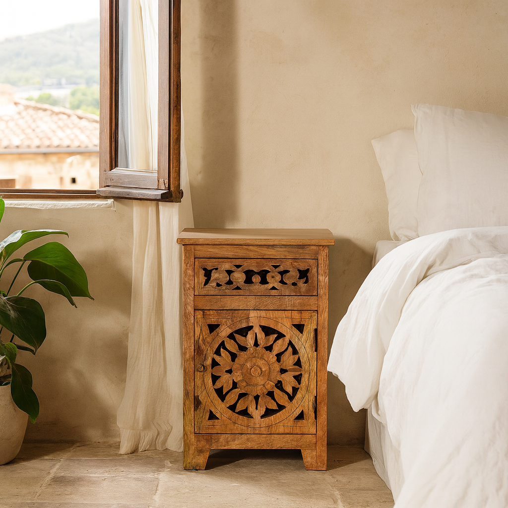 Een van de speciale kenmerken van onze massief houten meubelen is het oosters geïnspireerde ontwerp. We gebruiken graag uitgebreide ornamenten of bloemmotieven. Ze stralen gezelligheid uit, maar zijn ook een garantie voor huiselijkheid en individuele charme. Onze meubelontwerpen zijn voornamelijk geïnspireerd op de cultuur van India, waardoor onze meubels zich visueel onderscheiden van andere collecties en merken. Maar wat betreft het ontwerp van onze massief houten meubelen zijn we altijd goed voor een verrassing.