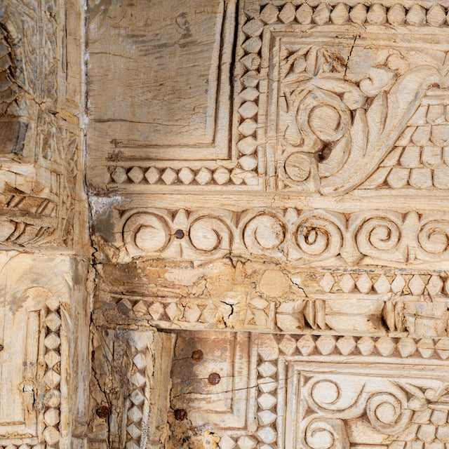 Lakhpat - zandstraalde hand gesneden antieke deurframe spiegel 184 cm