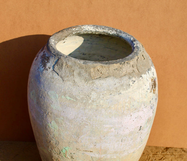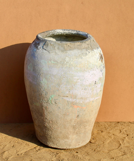 Deze prachtige antieke Indiase vaas Betal is een absoluut uniek stuk en zal uw omgeving betoveren met zijn onmiskenbare boho charme. Dankzij het originele ontwerp past de vaas gemakkelijk in verschillende interieurs, zoals boho/vintage, Ibiza look, mediterrane interieurs.