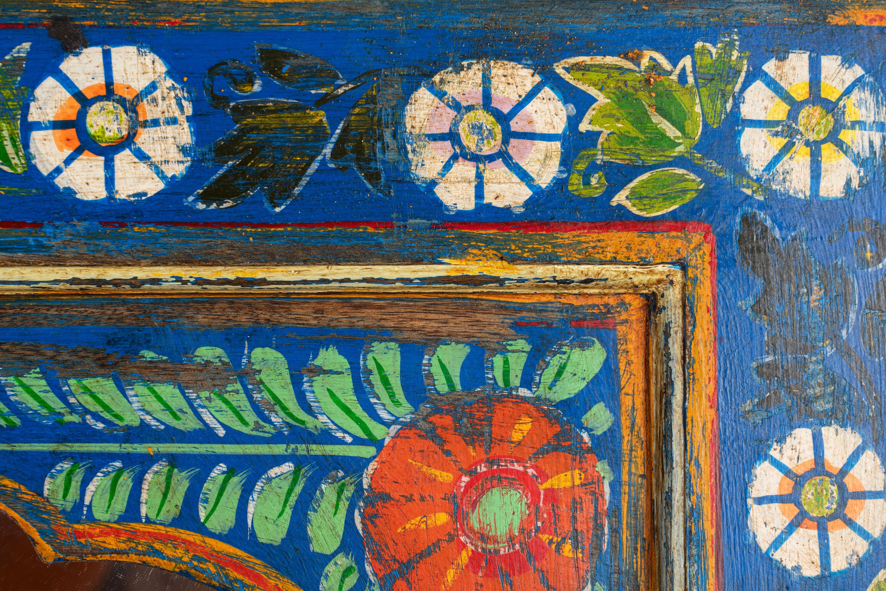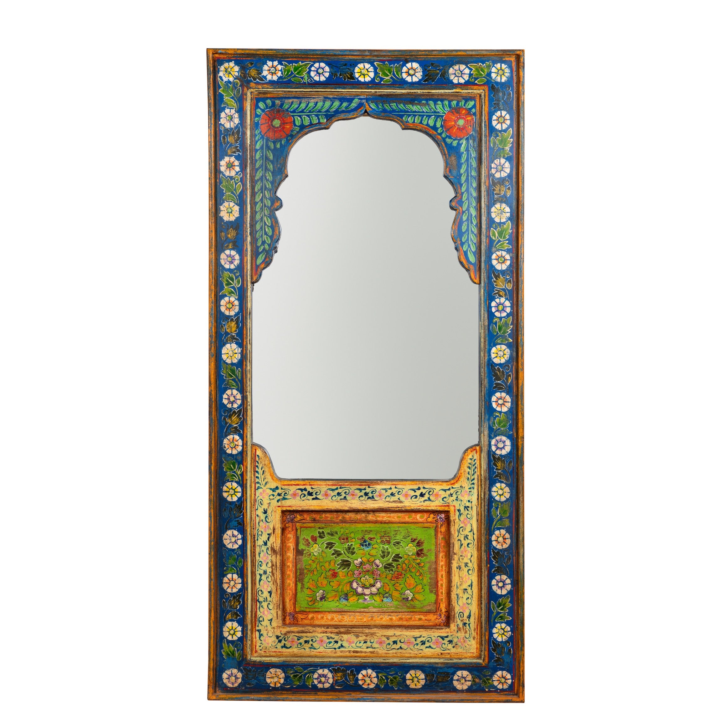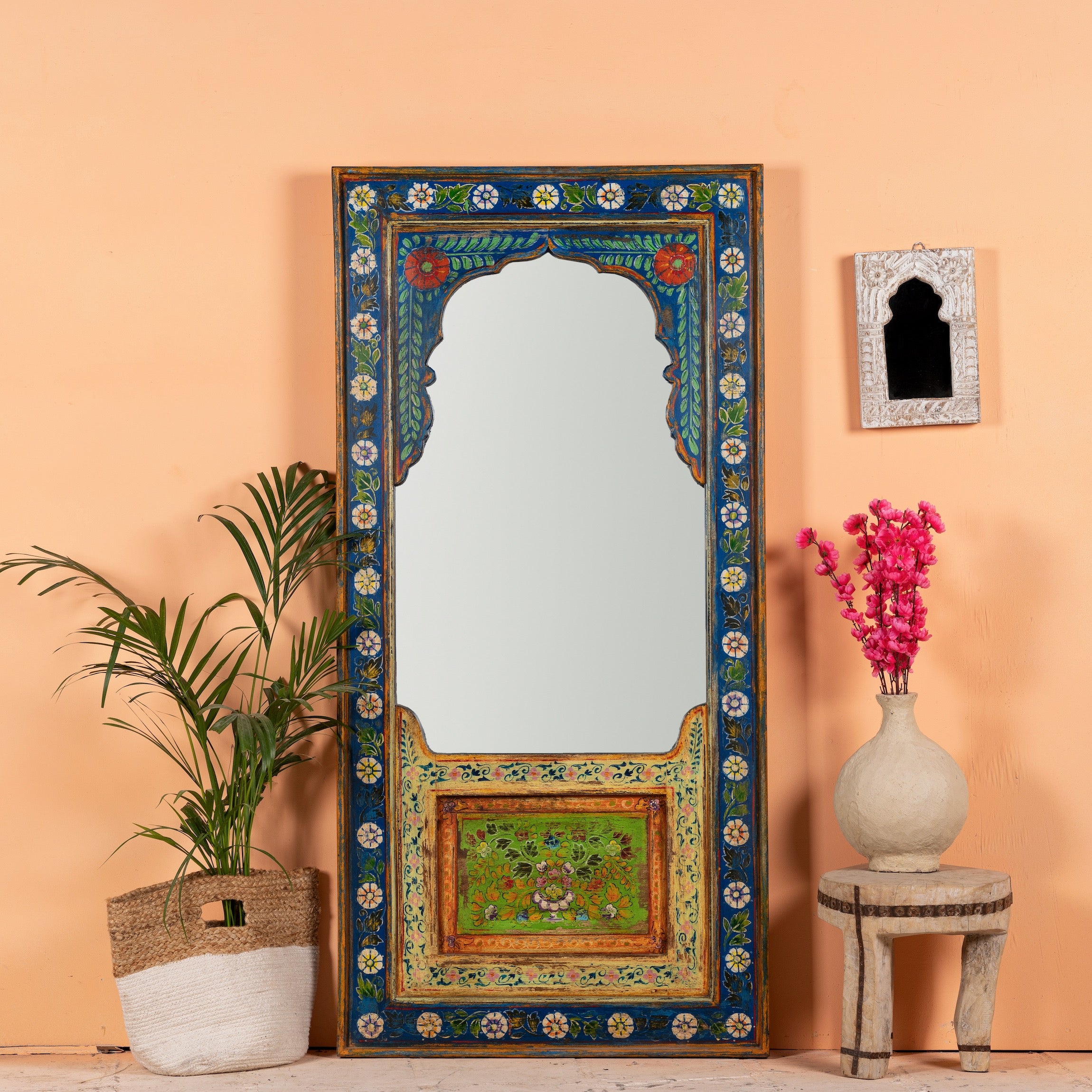 Deze prachtige, met de hand beschilderde spiegel trekt met zijn kleur en prachtige bloemenpatronen ieders aandacht.