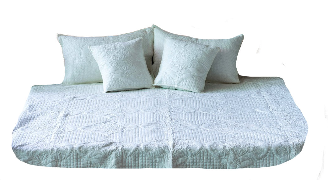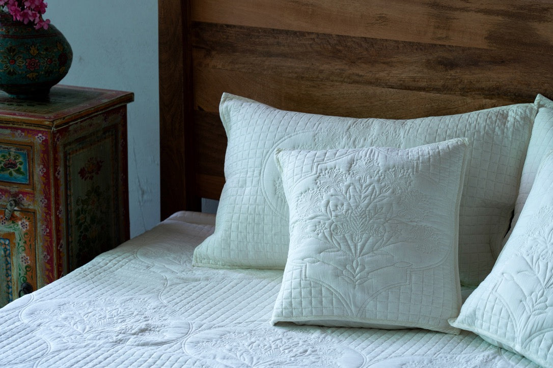 Deze bedovertrekset is gemaakt van 100% ongebleekt natuurlijk katoen en is rijkelijk geborduurd. De set wordt geleverd met 2 kleine en 2 grote kussenslopen.
