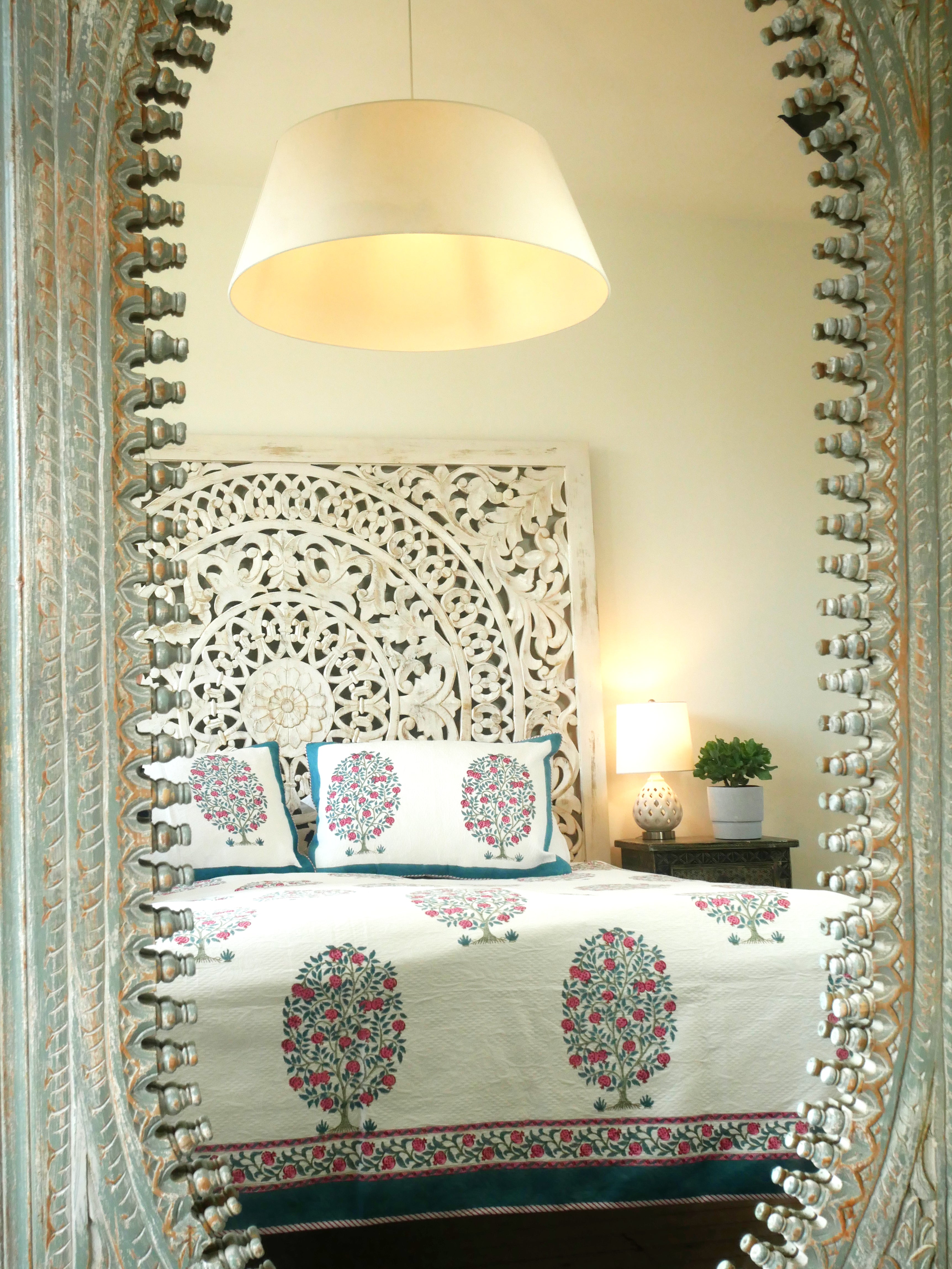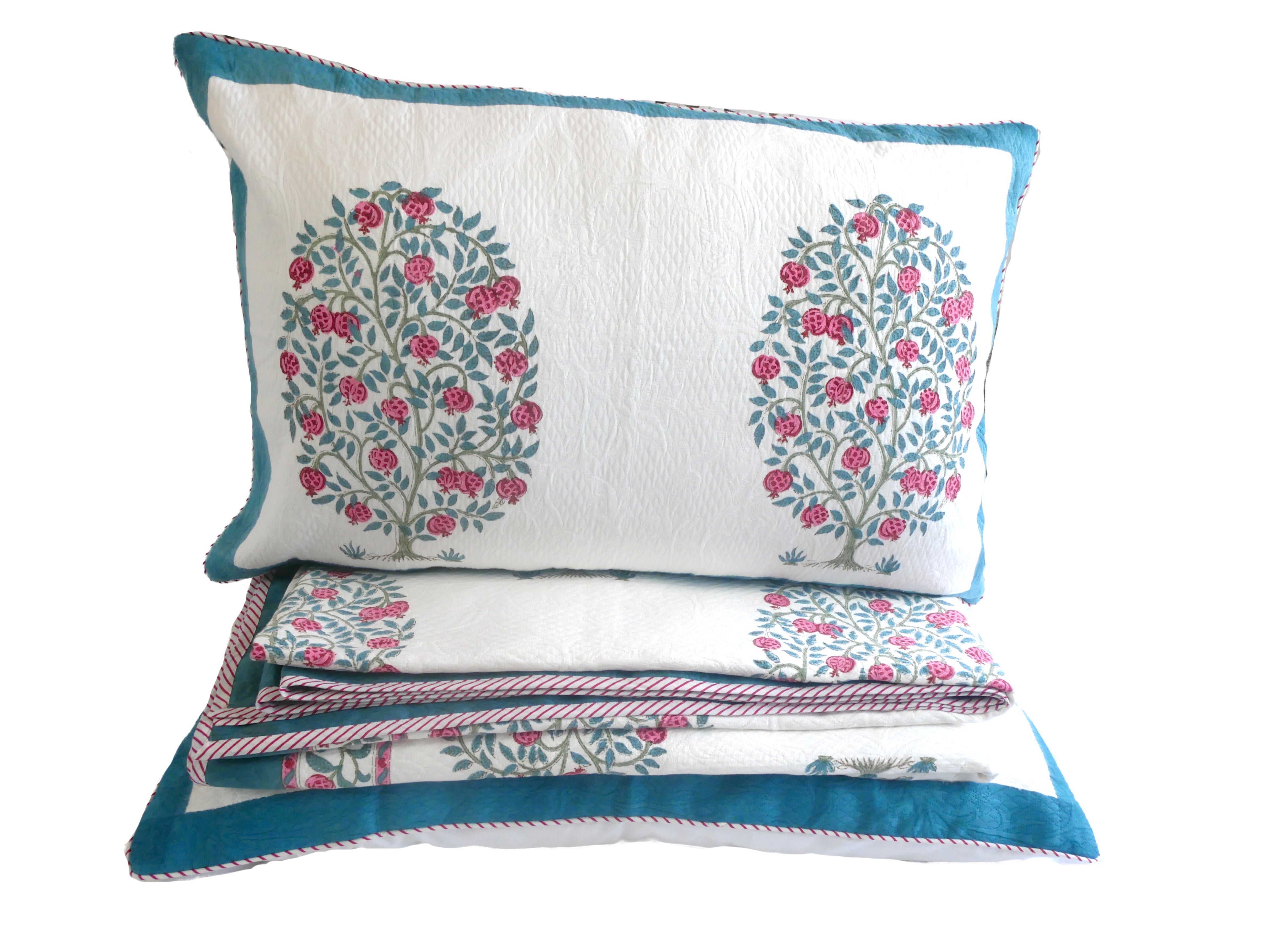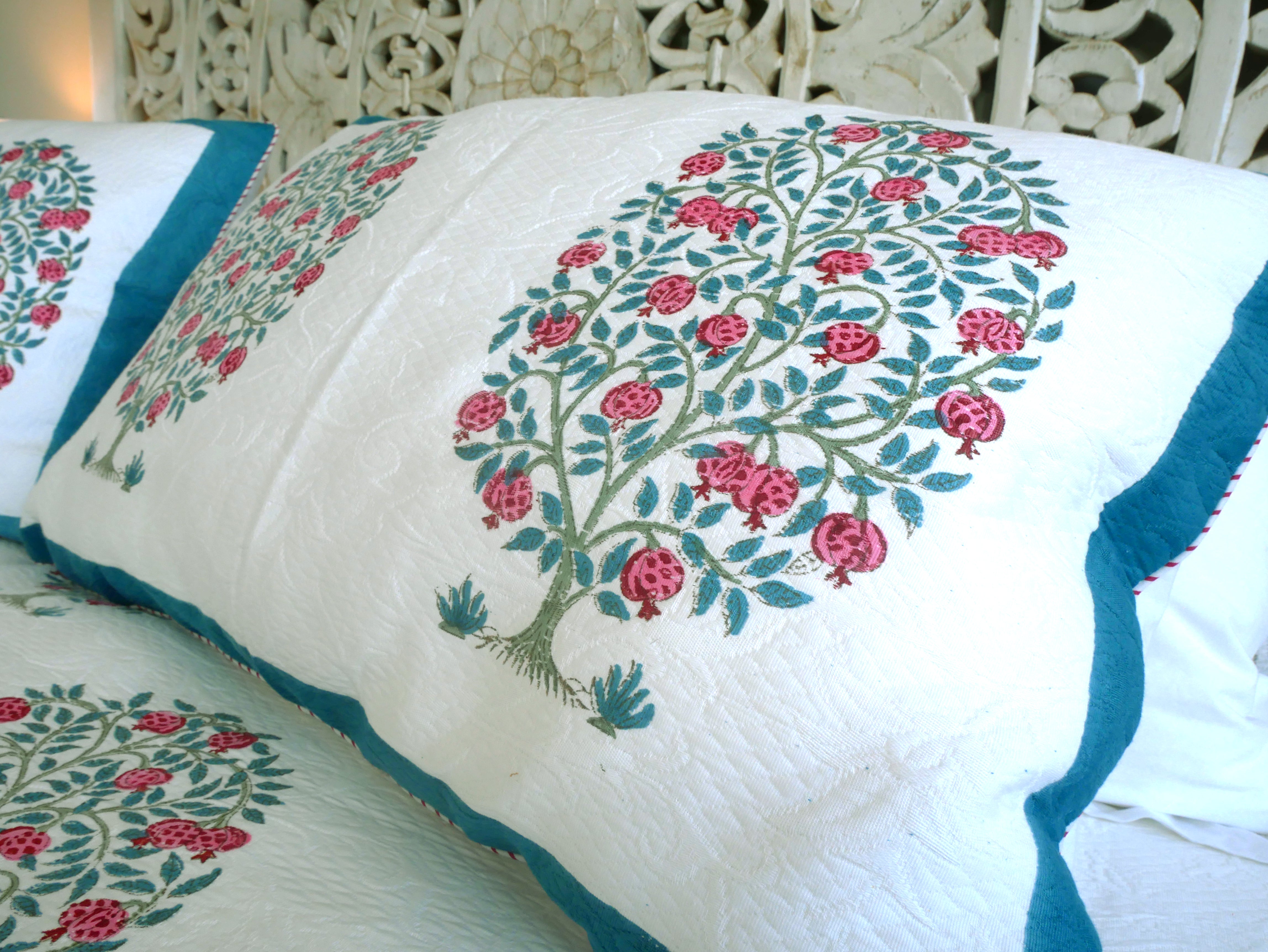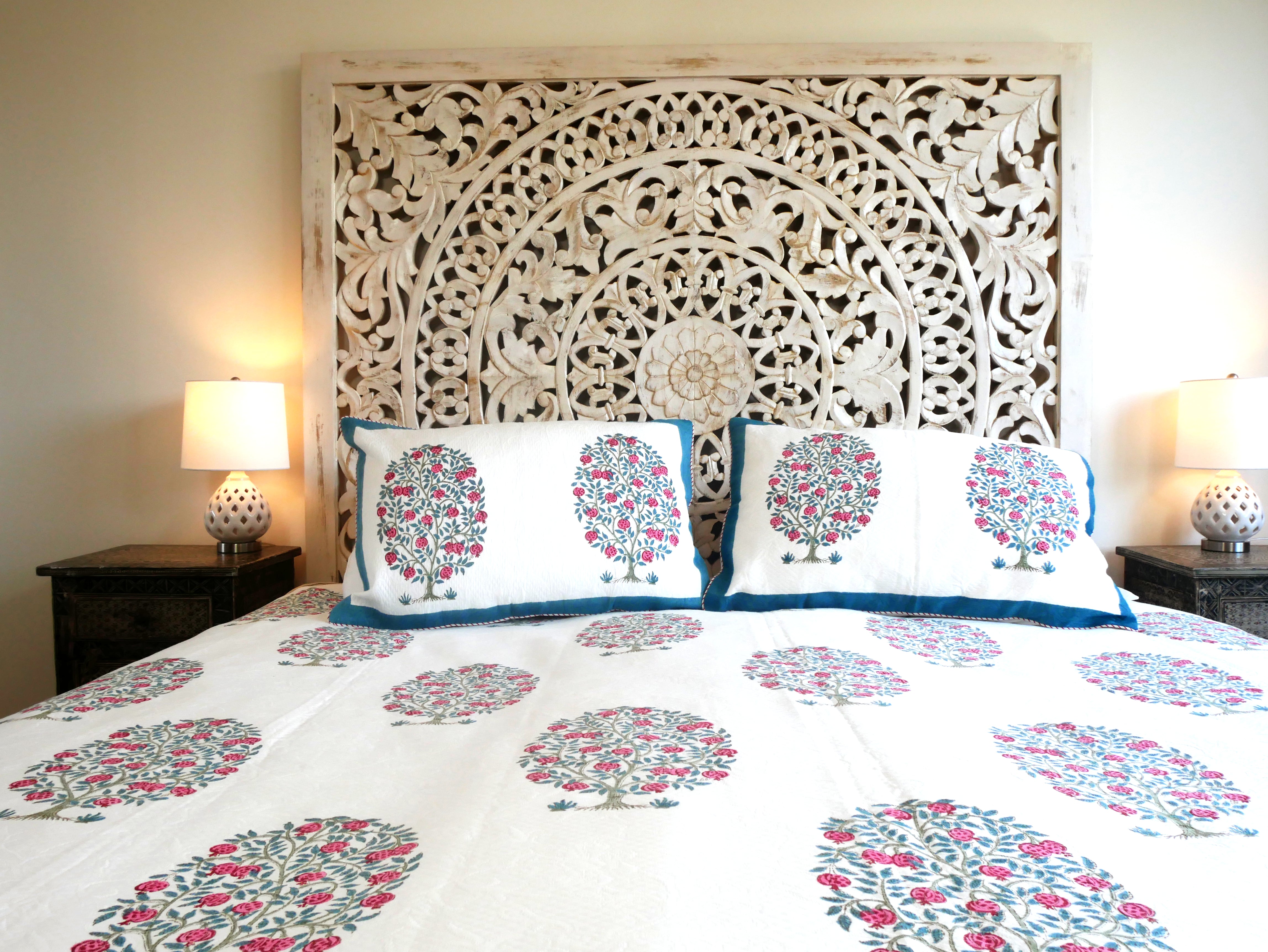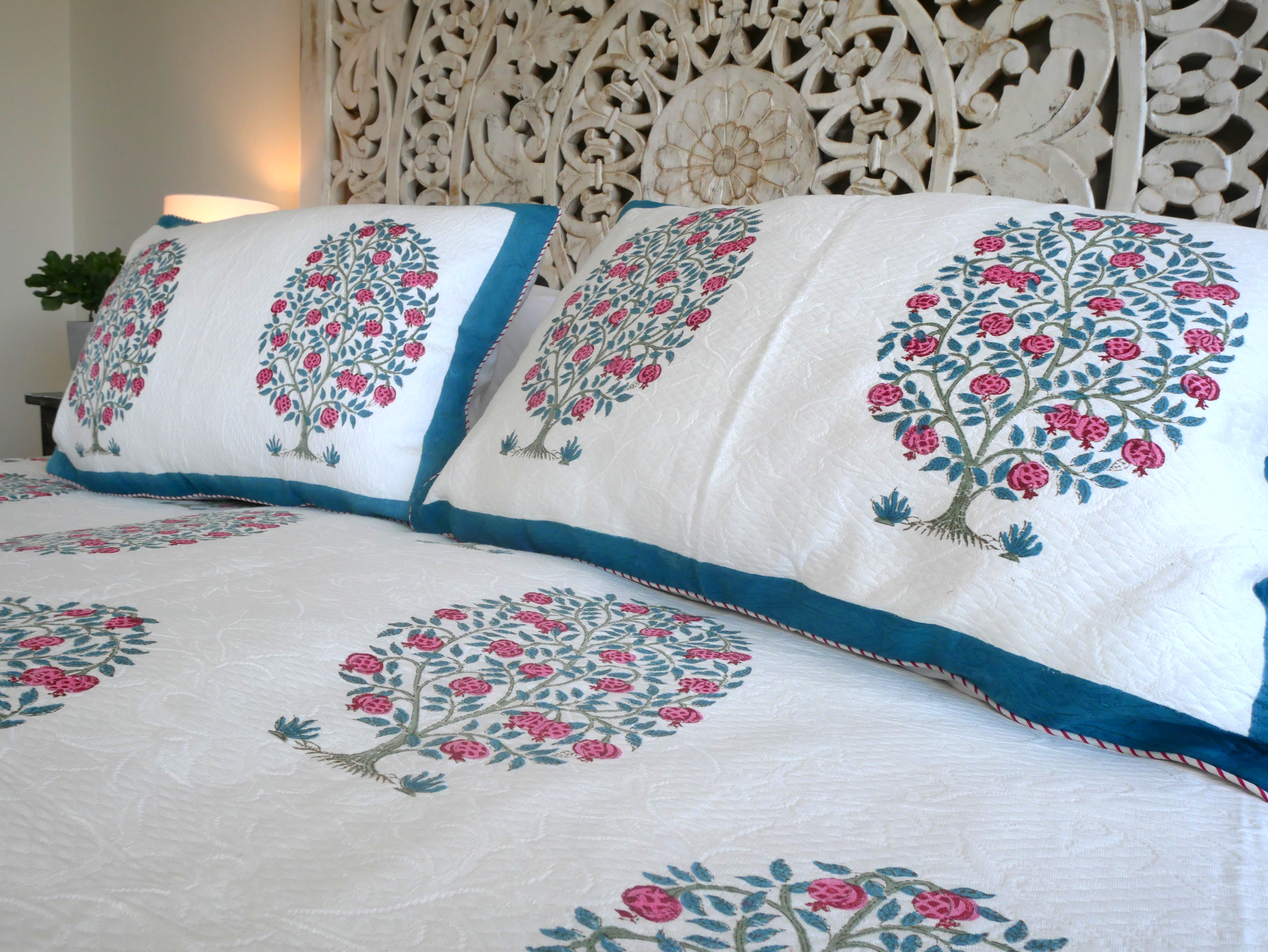 Deze luxe bedset, bestaande uit een groot dekbed en 2 kussenslopen, is zorgvuldig met de hand vervaardigd en het patroon is middels blokdruk aangebracht.