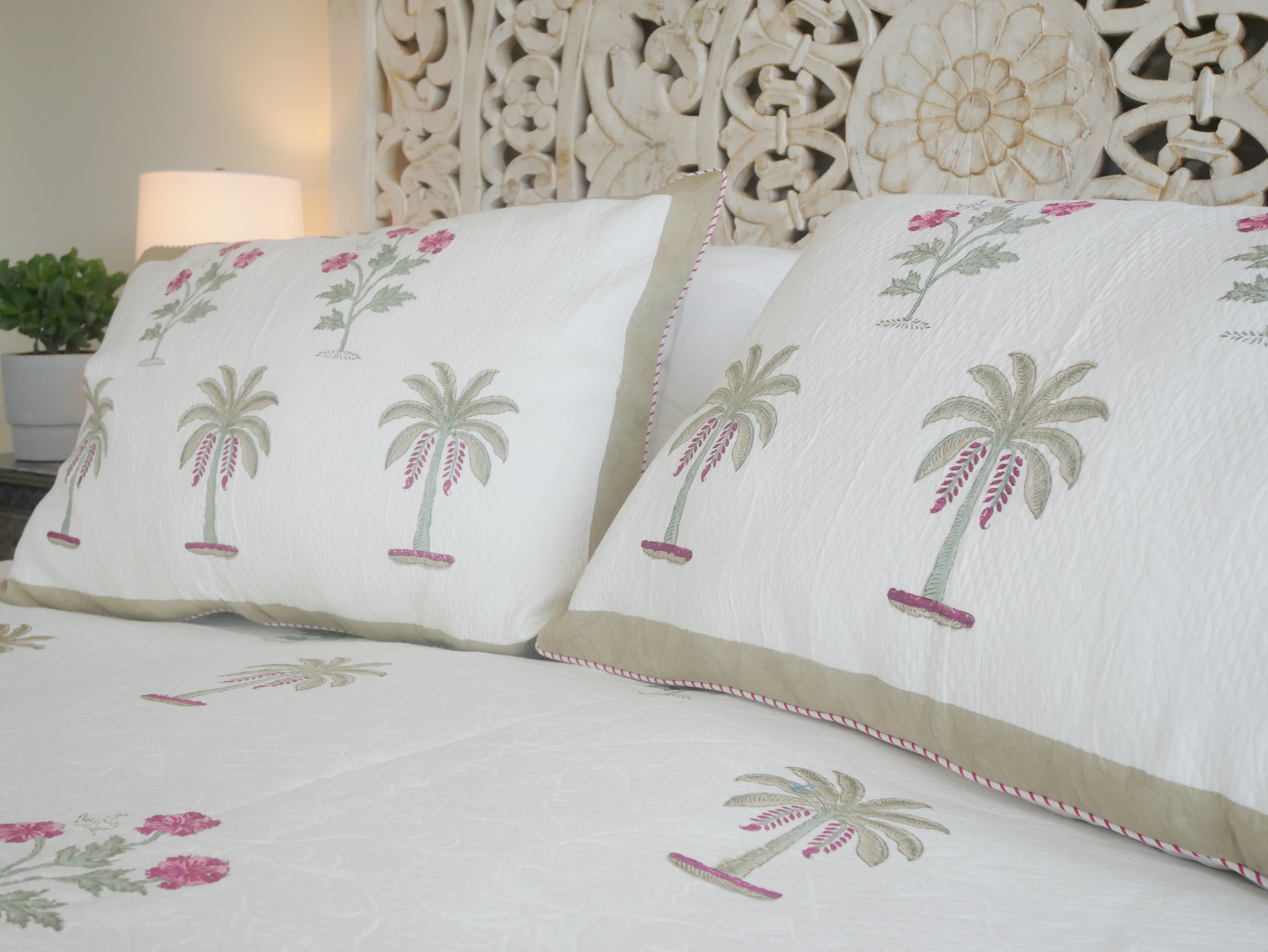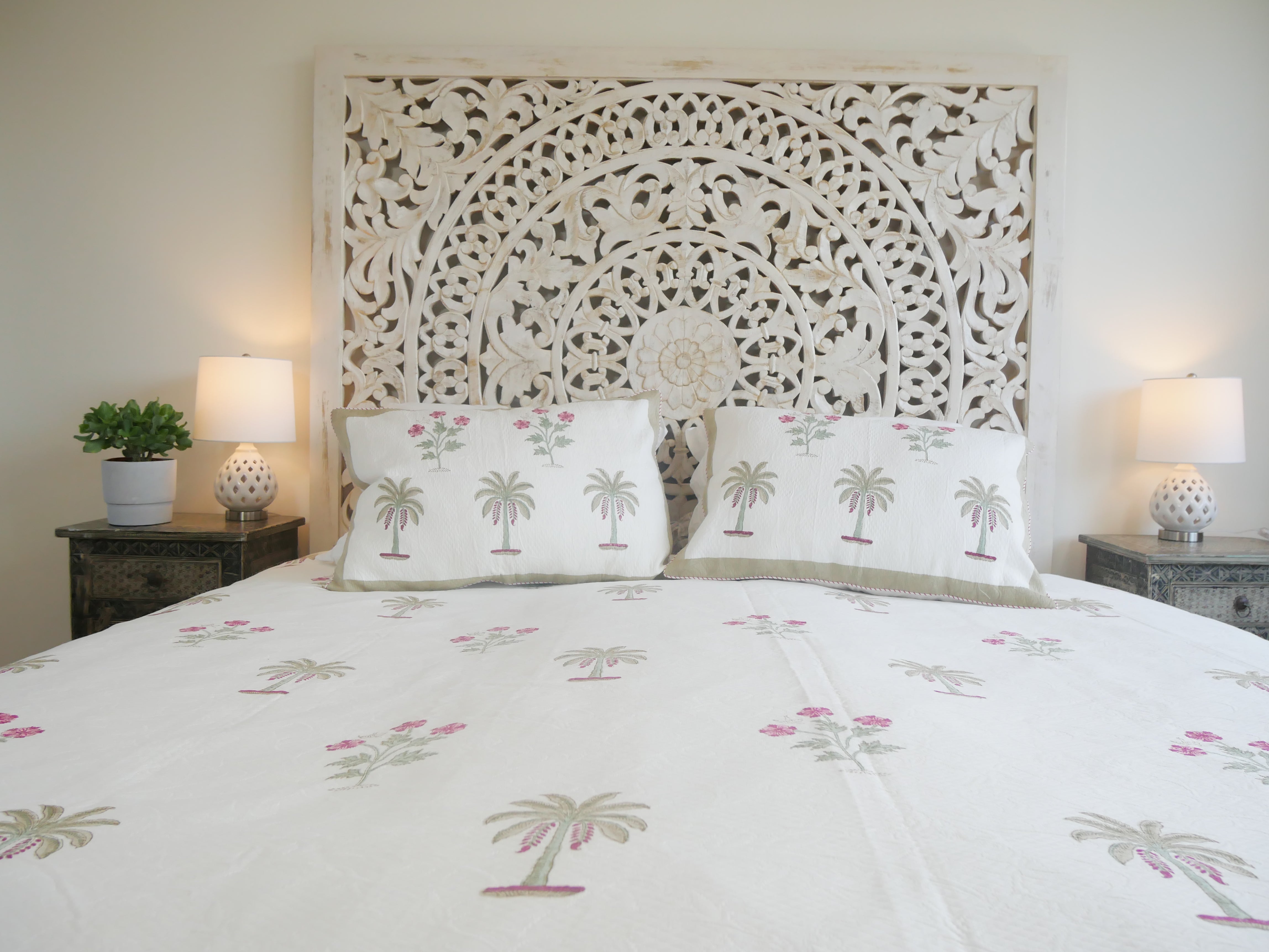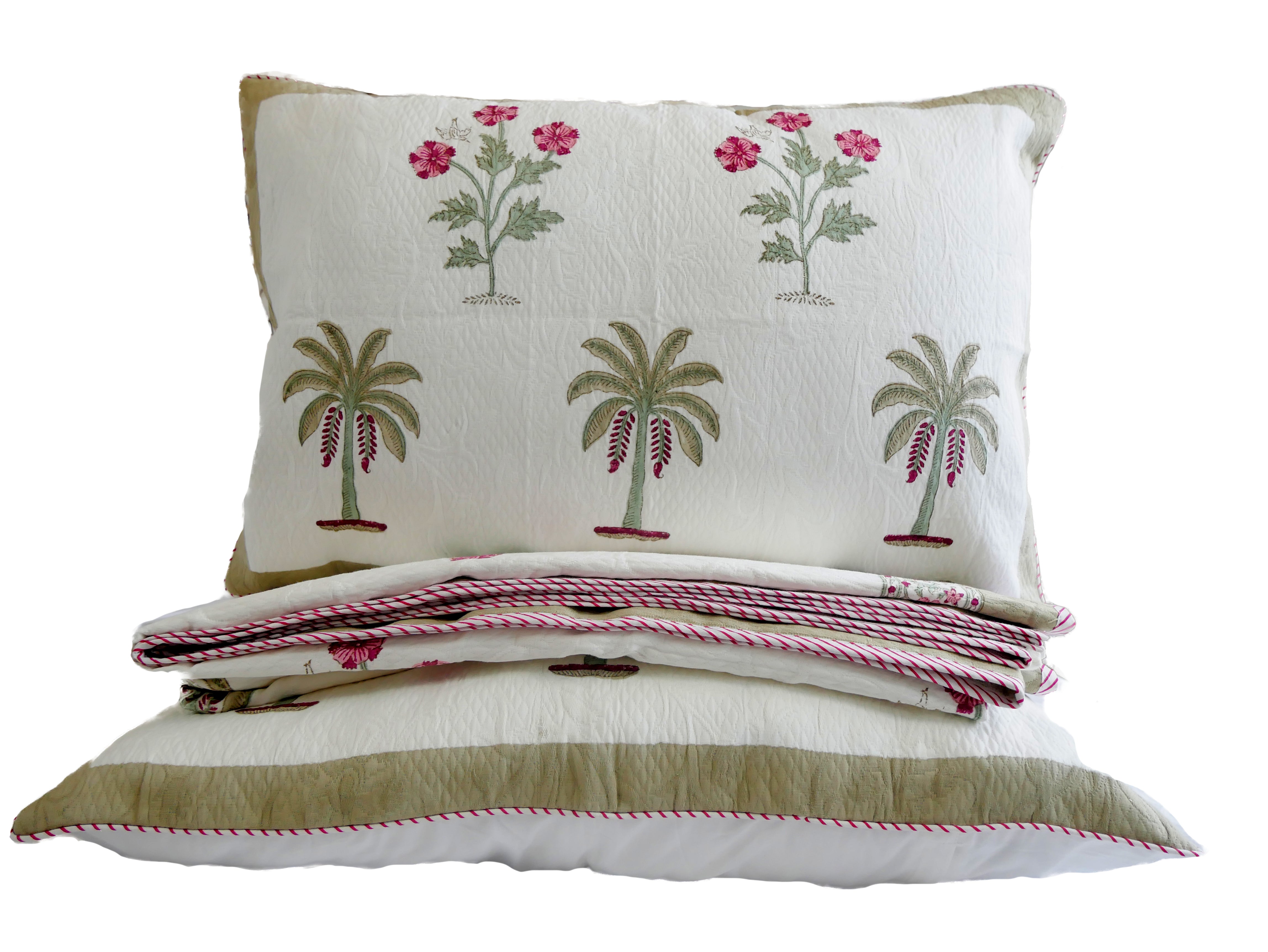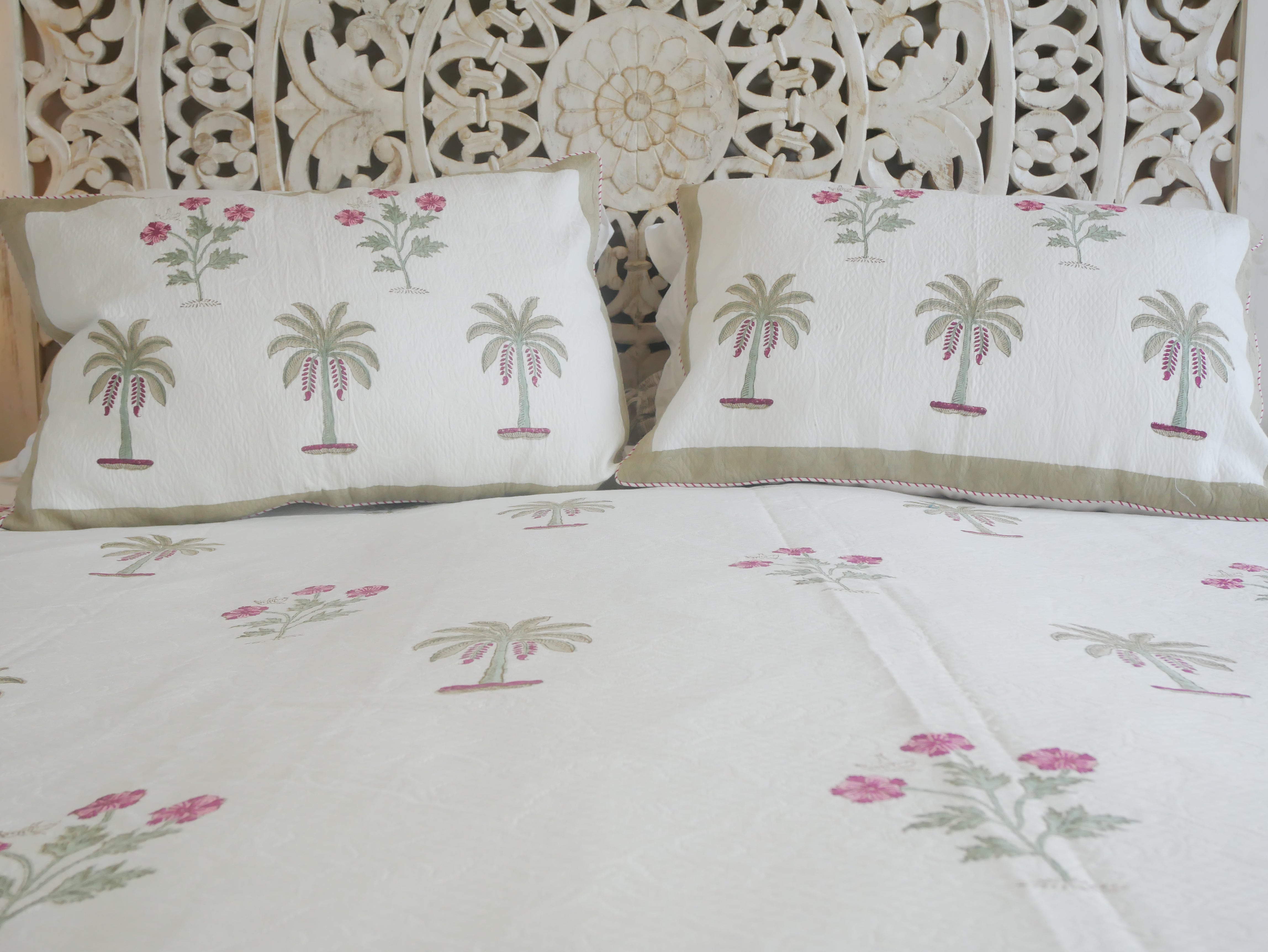 Deze luxe bedset, bestaande uit een groot dekbed en 2 kussenslopen, is zorgvuldig met de hand vervaardigd en het patroon is middels blokdruk aangebracht.