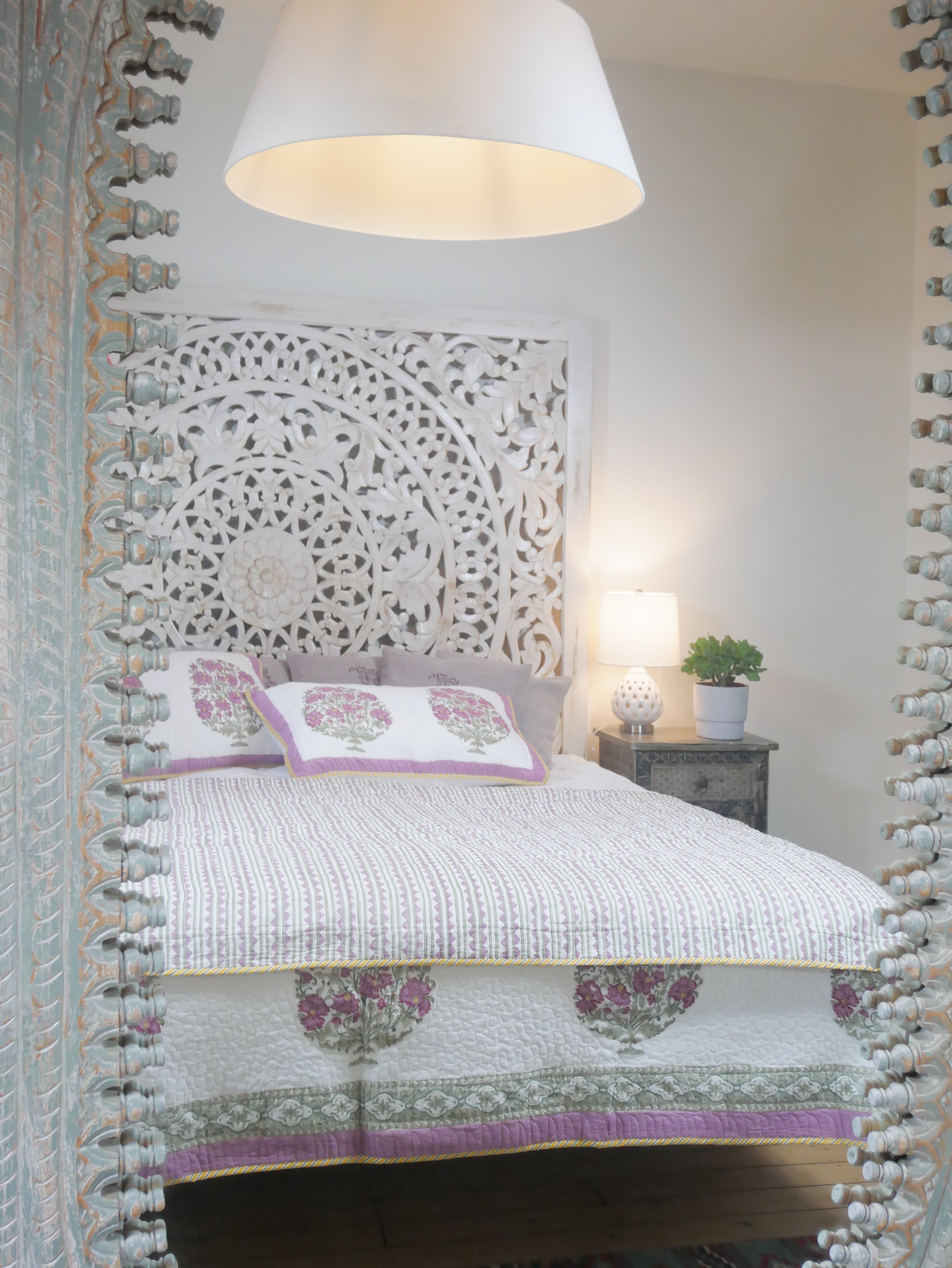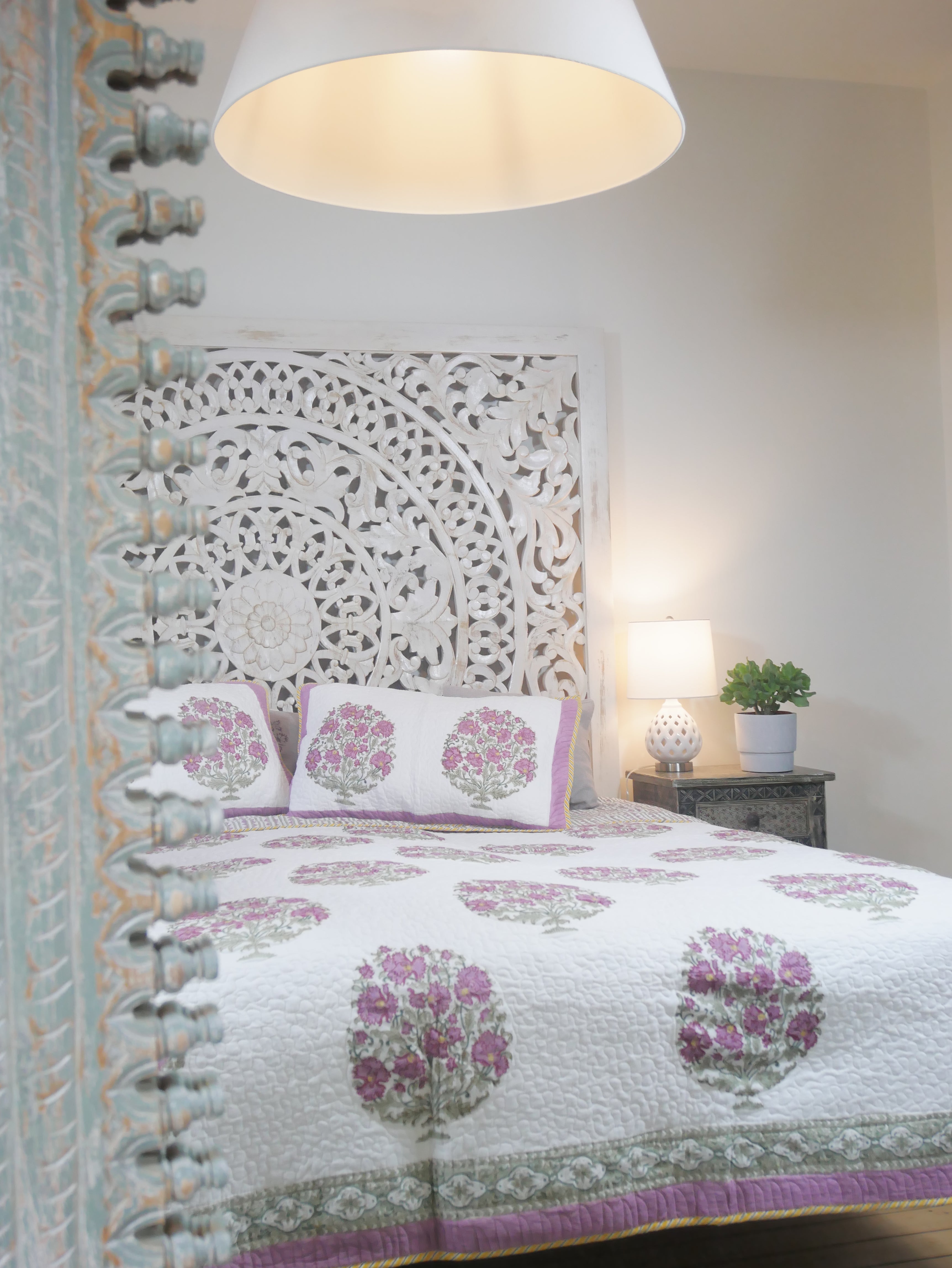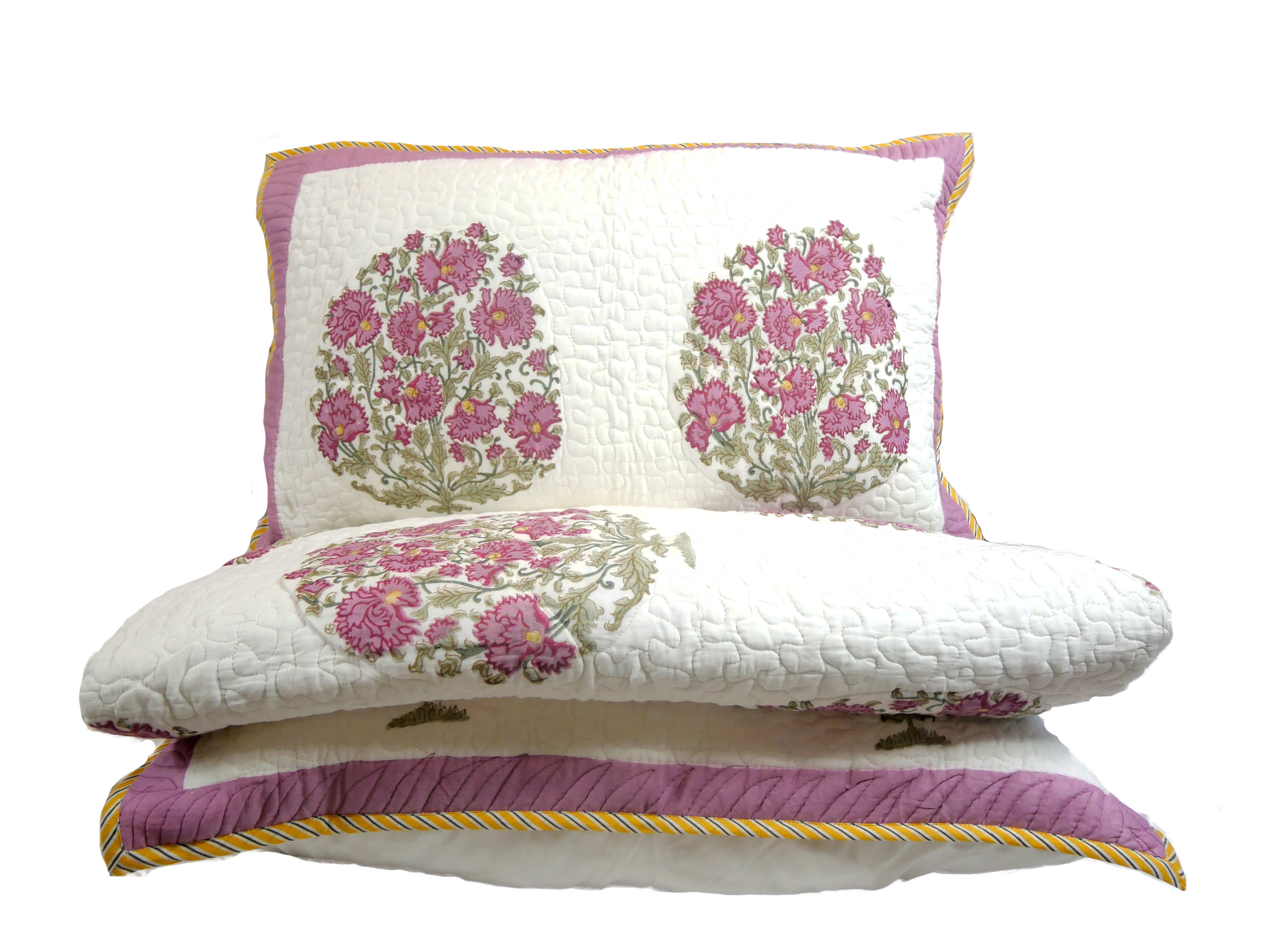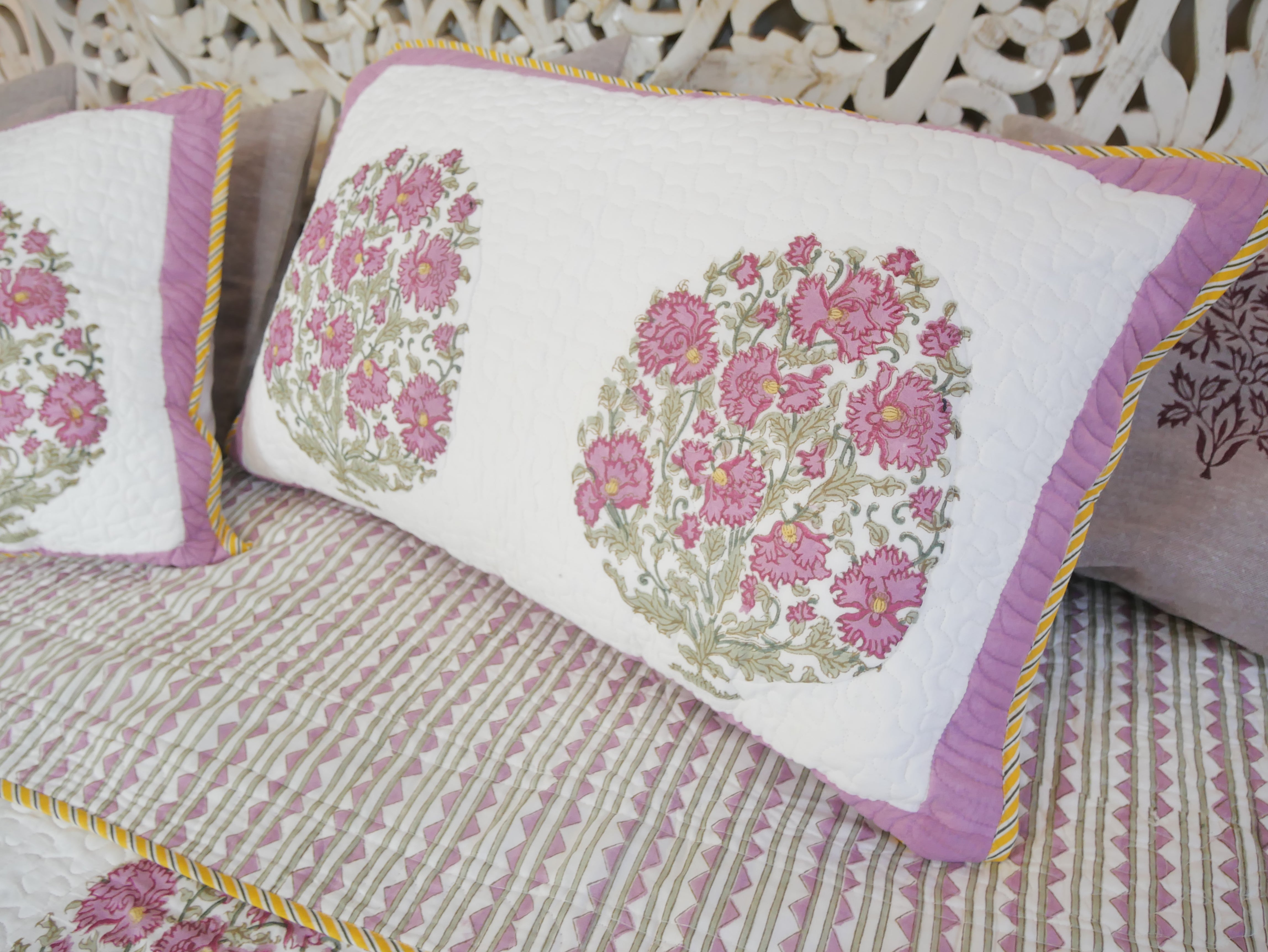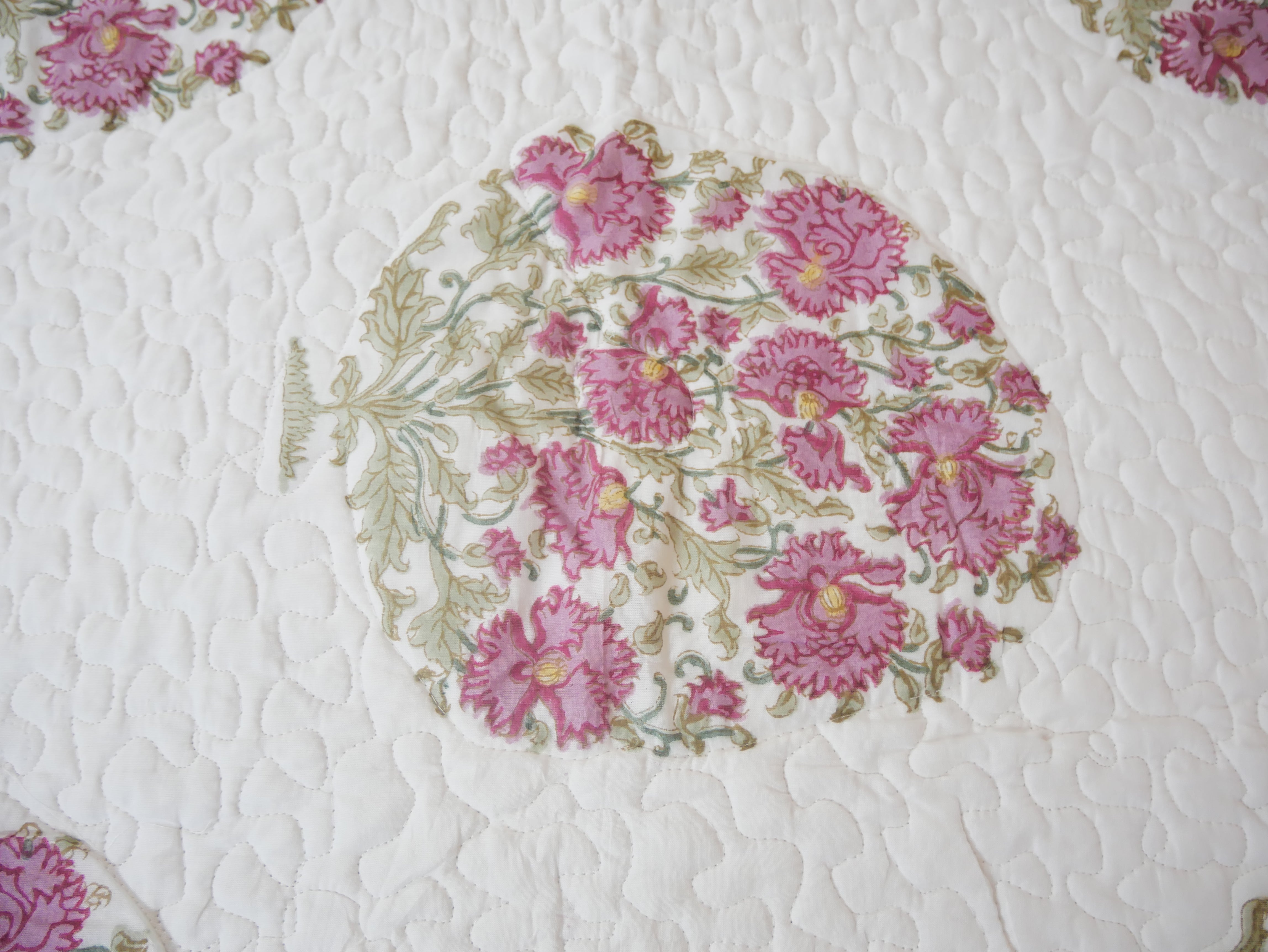 Deze prachtige handgemaakte 220x260 cm blok bedrukte bedsprei is aan beide kanten bedrukt in typische bloemenpatronen uit Rajasthan.
