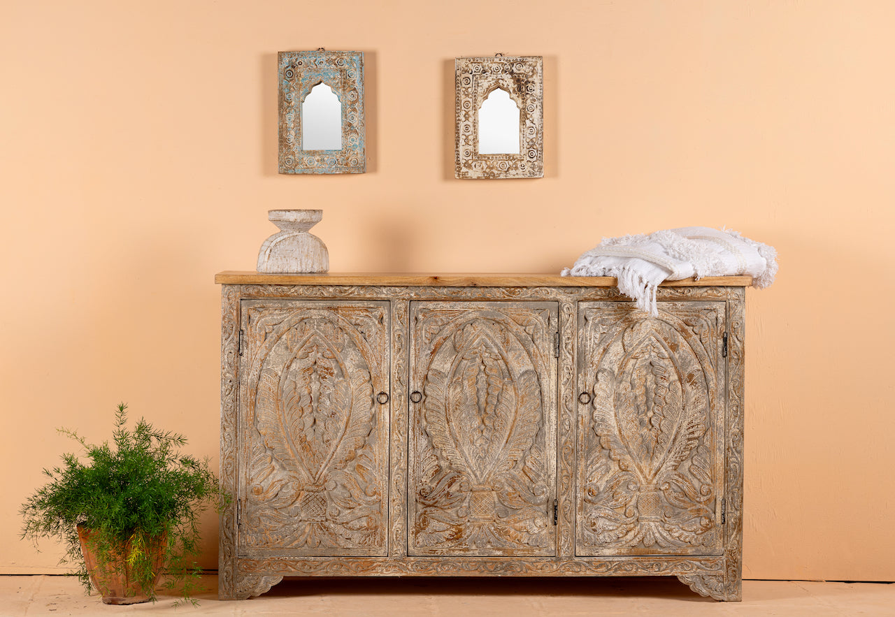 Ananga - Hand gesneden mango houten vintage dressoir 150 cm