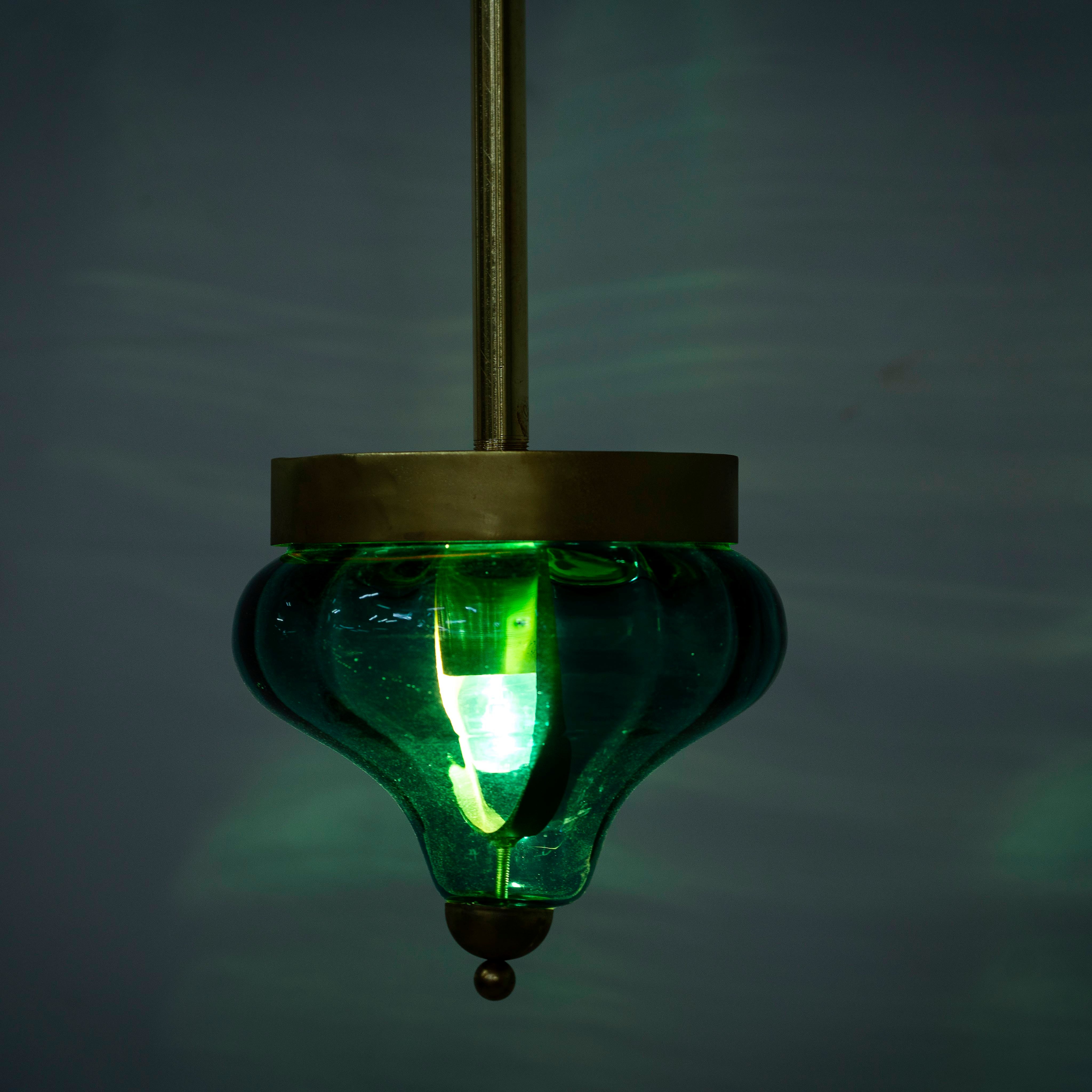 Het messing frame zorgt niet alleen voor duurzaamheid, maar zorgt ook voor een rijke, warme gloed die prachtig contrasteert met het groene glas. Deze combinatie creëert een boeiend middelpunt dat past bij verschillende decorstijlen, van klassiek tot eigentijds.