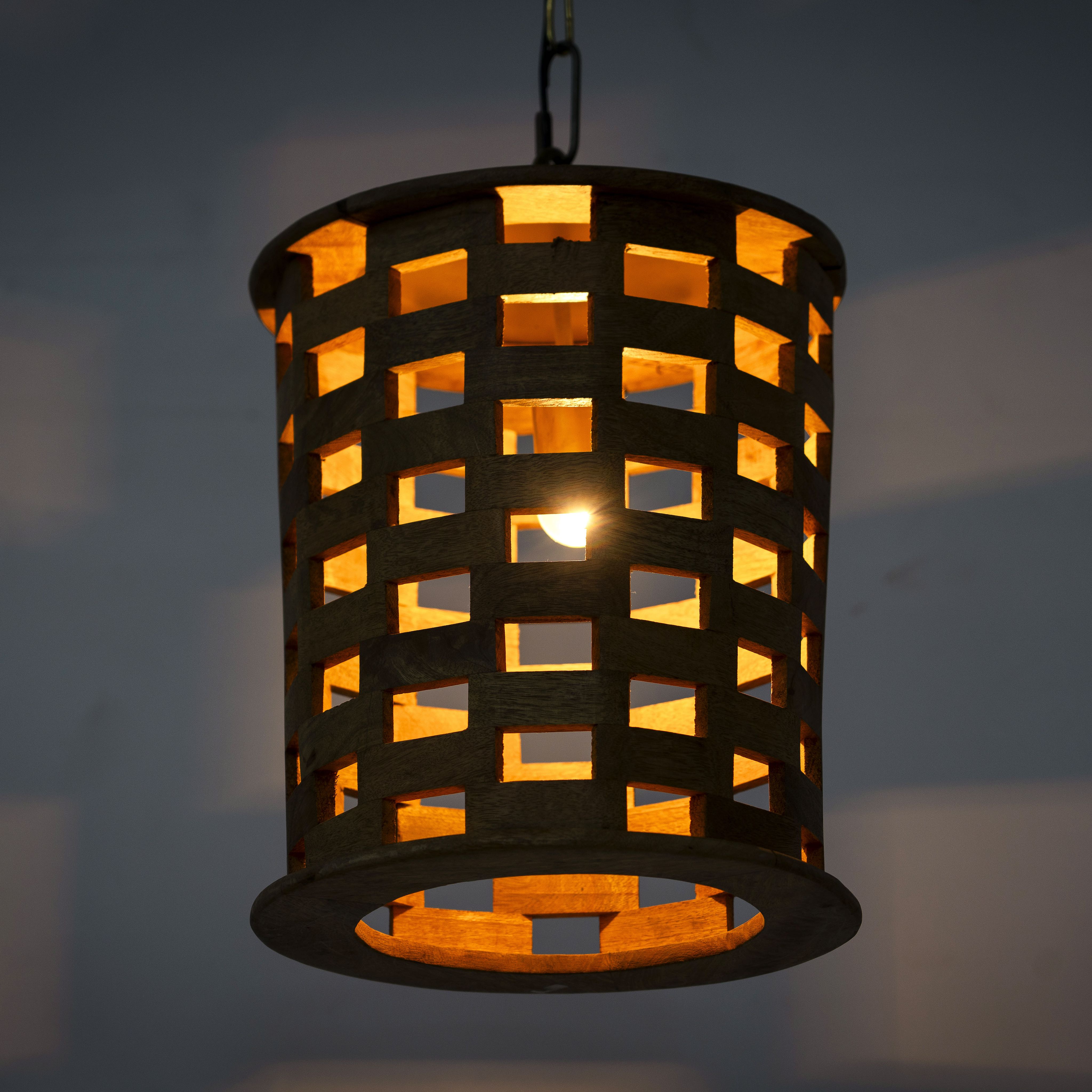 De lamp heeft een nauwkeurig ontworpen rasterpatroon, waardoor het licht op een mooie en ingewikkelde manier door de lamp heen filtert. De warme tinten van het mangohout in combinatie met de glanzende messing randen creëren een harmonieuze balans van rustieke charme en moderne verfijning. Deze plafondlamp is een uitstekende aanvulling op eetkamers, keukens, woonkamers of entrees en brengt een vleugje natuurlijke elegantie in elke ruimte.