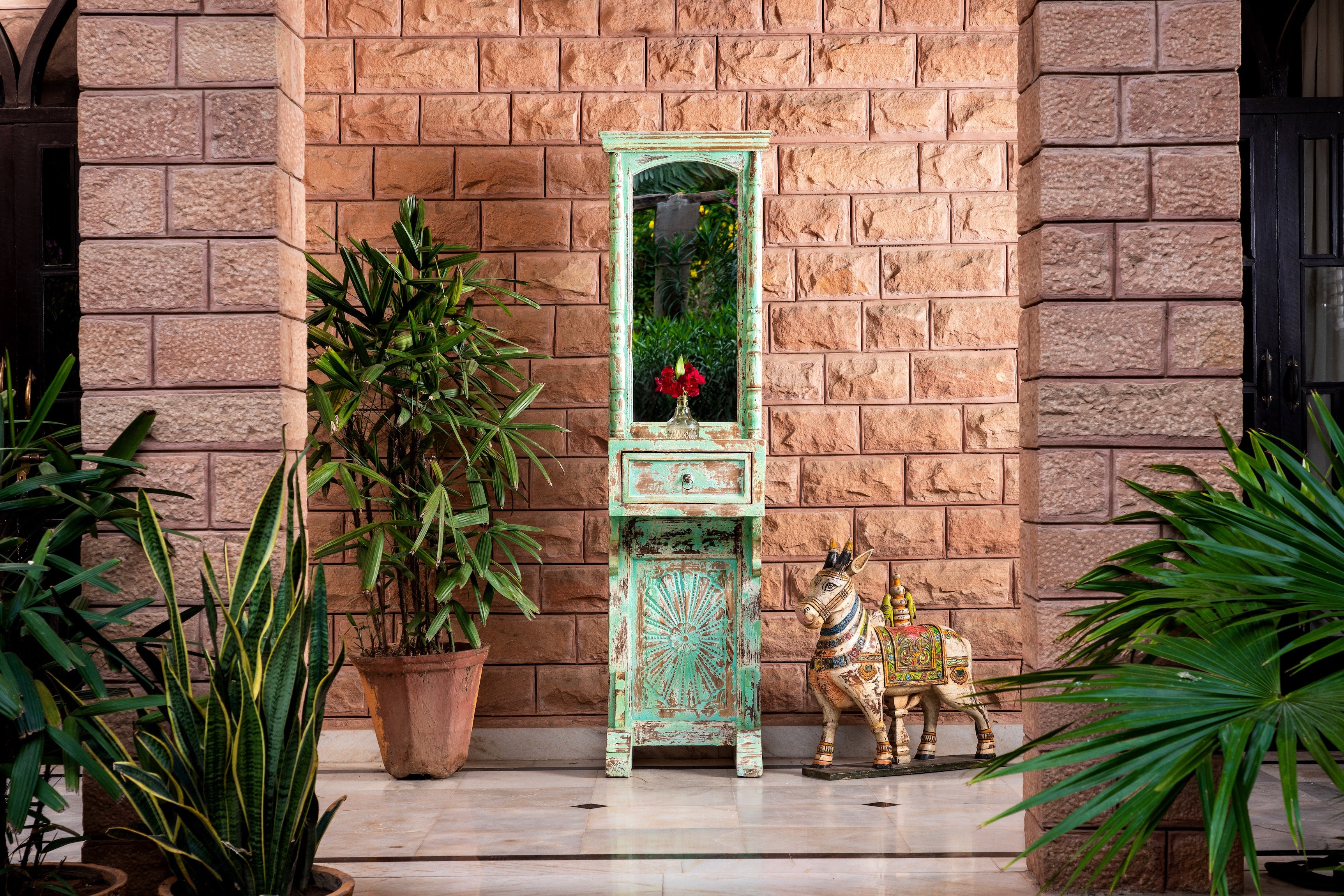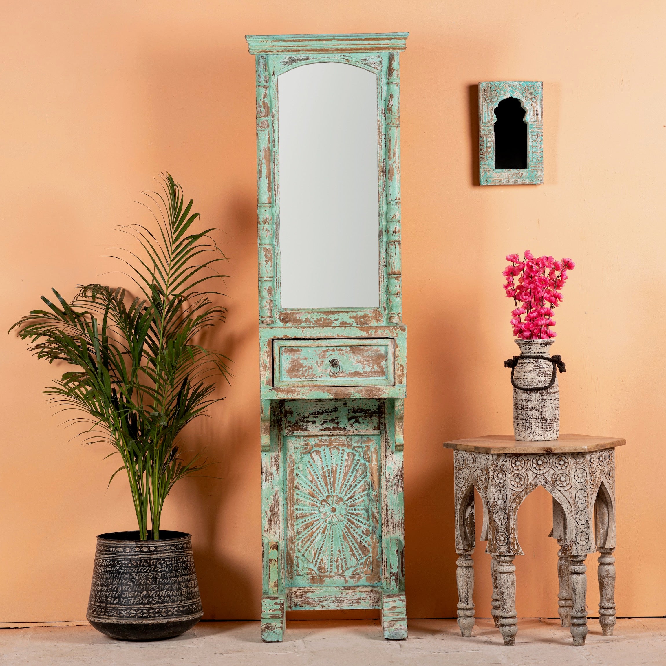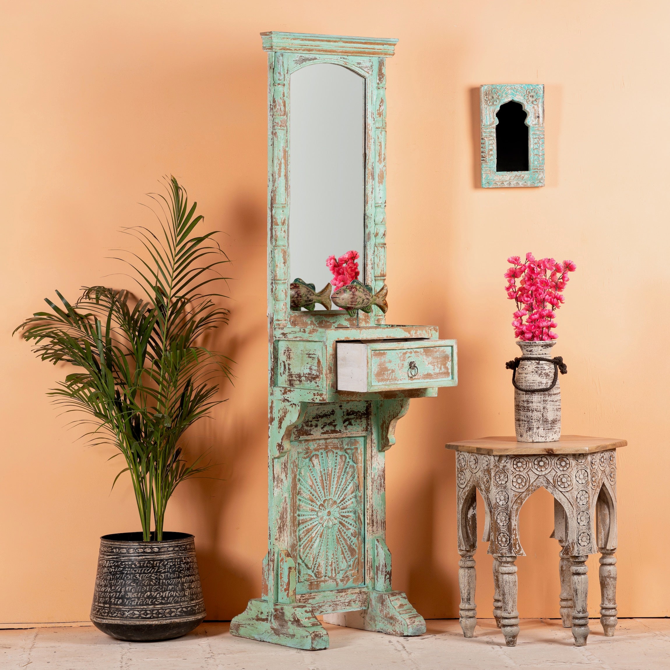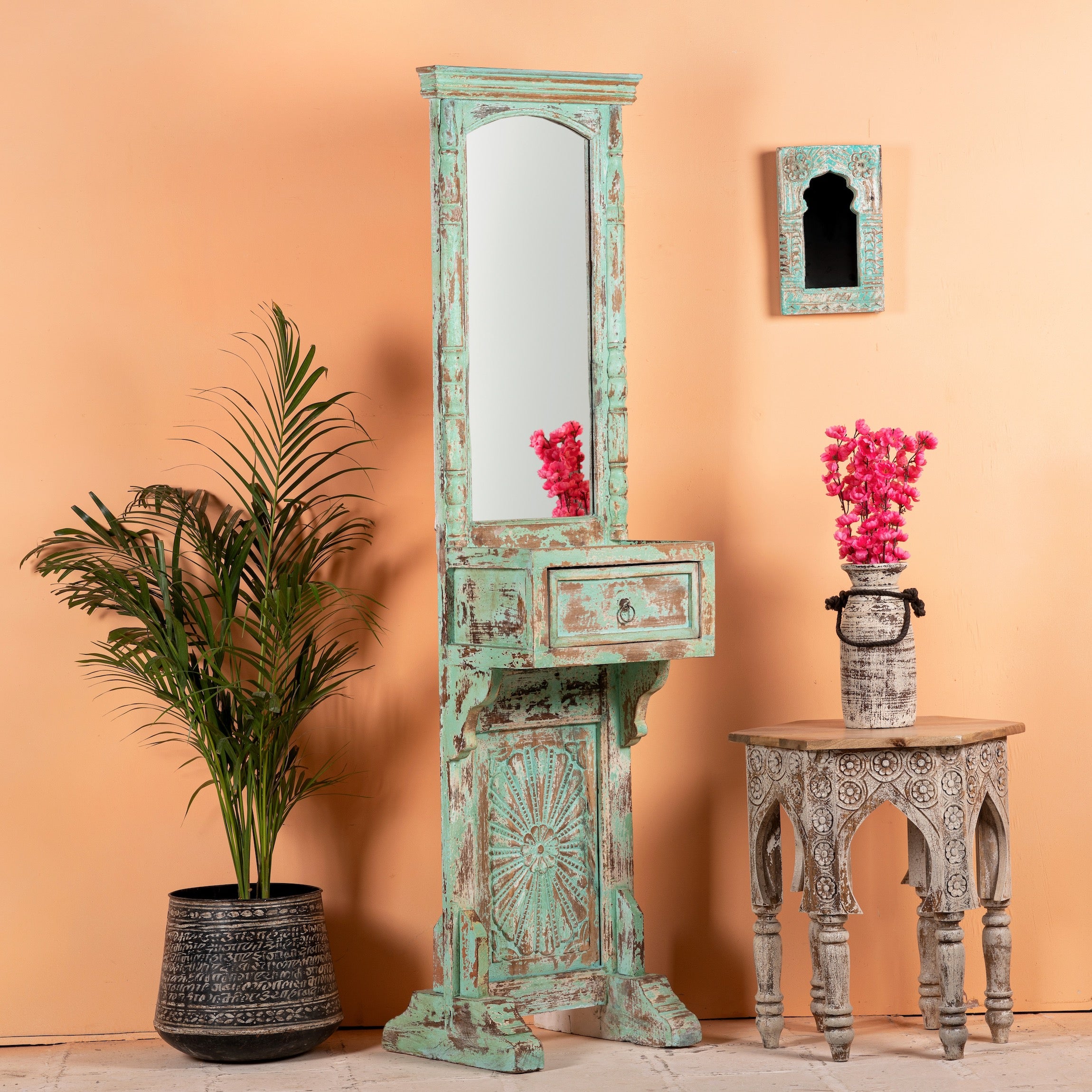 Je kunt je sleutels op de plank bewaren en snel in de spiegel kijken voordat je het huis verlaat. Dit unieke meubelstuk is ook uniek met de hand gesneden.