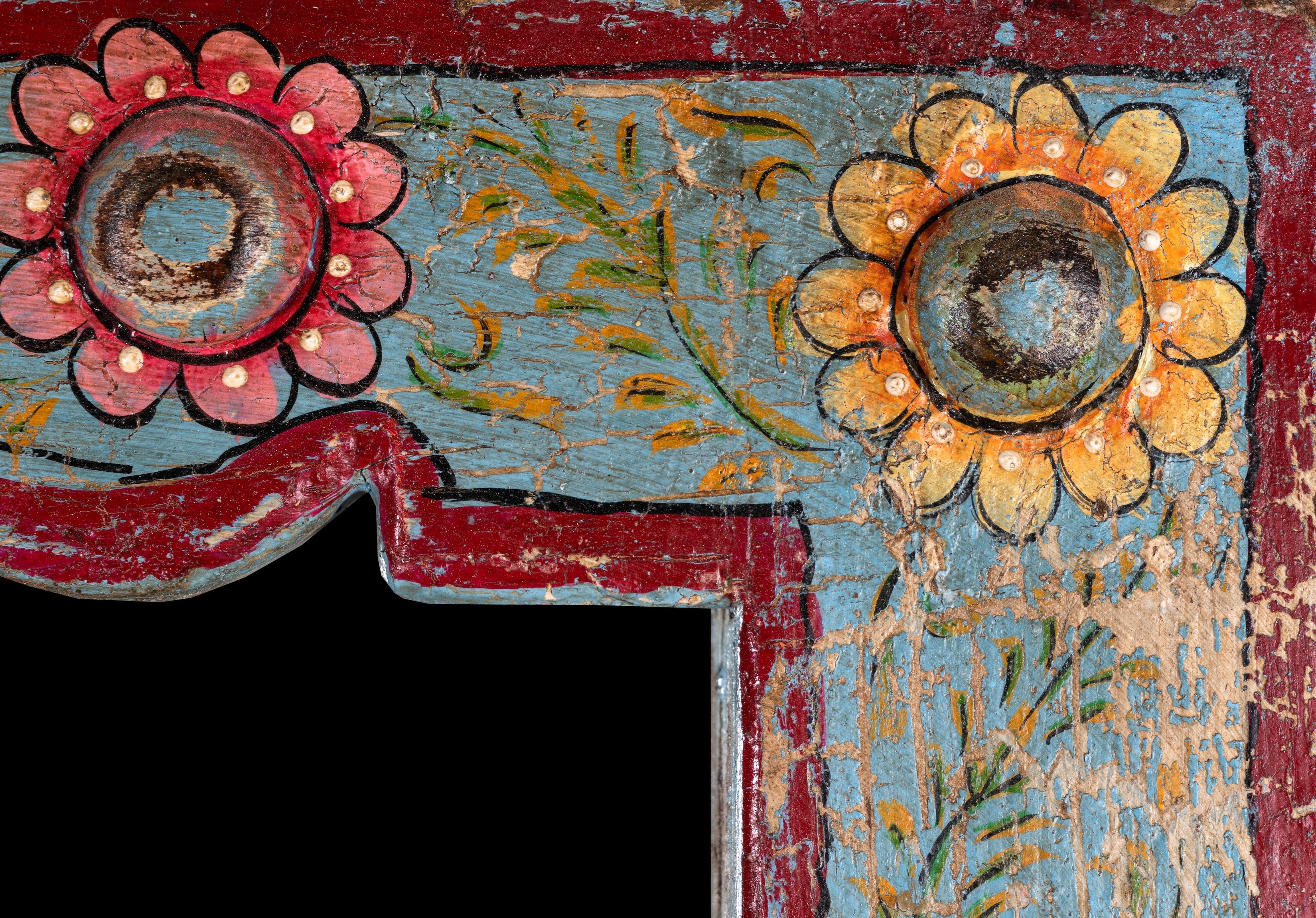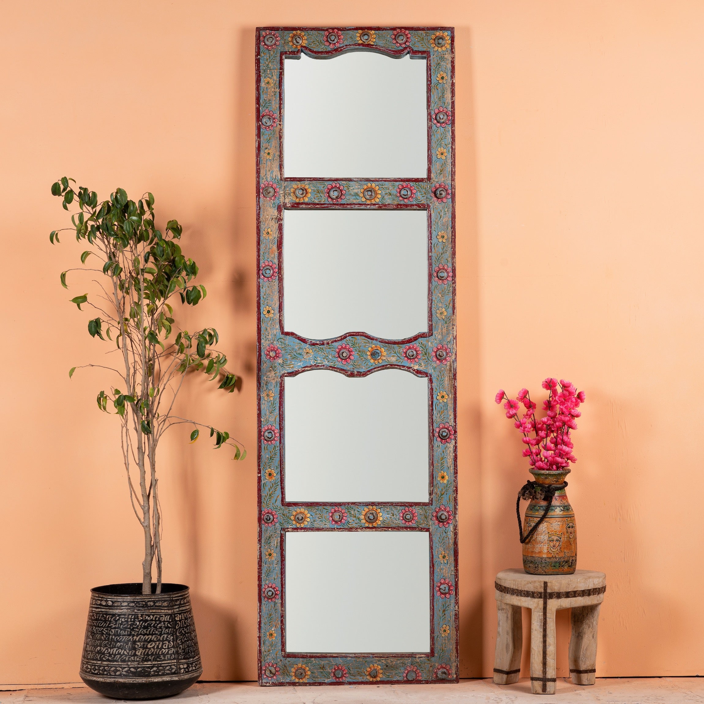 Spiegel Kalarad is een fraai met de hand beschilderde spiegel gemaakt van gerecycled teakhout.