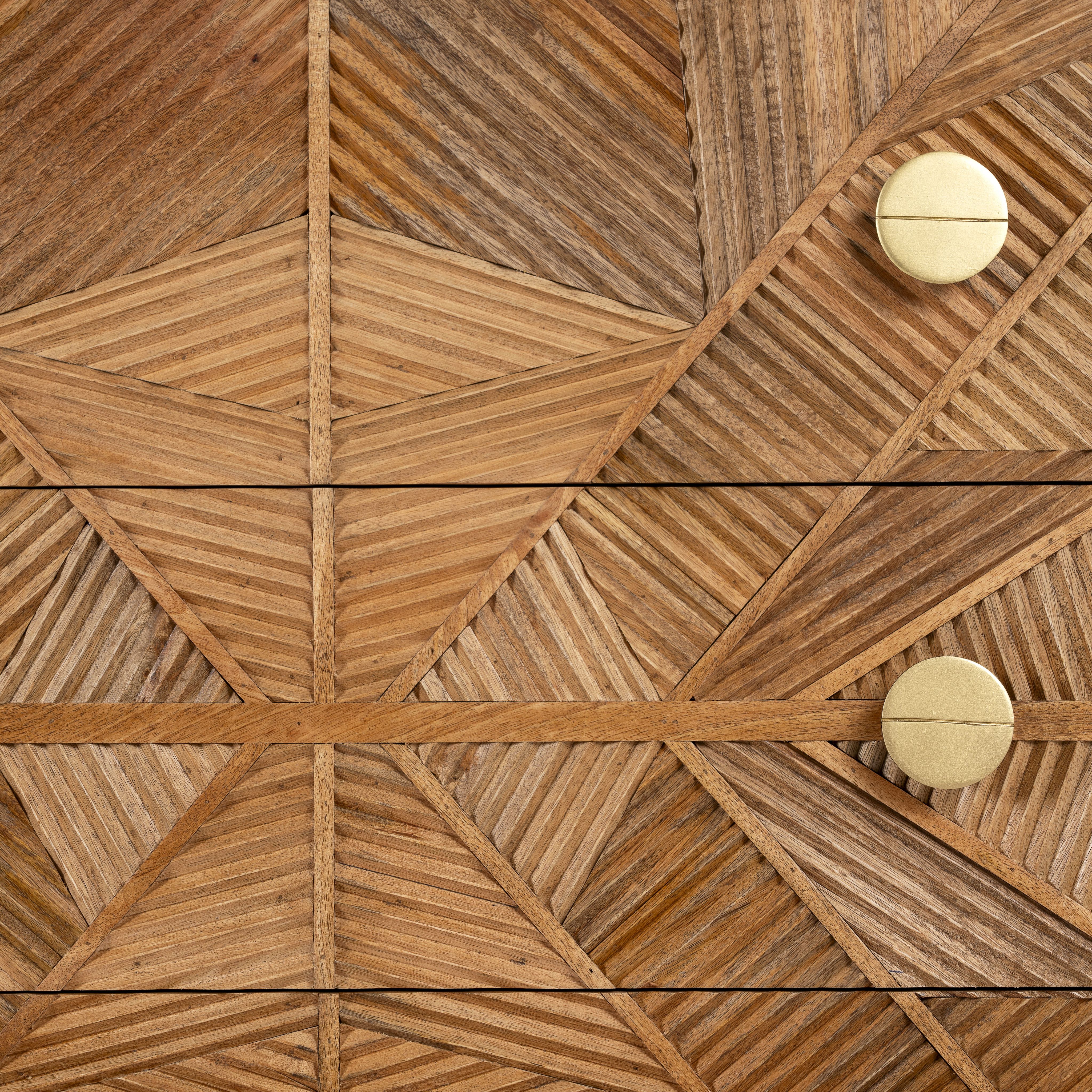 Deze ladekast Varalika heeft een absoluut trendy design en is gemaakt van natuurlijk mangohout met een gestreept houtpatroon.