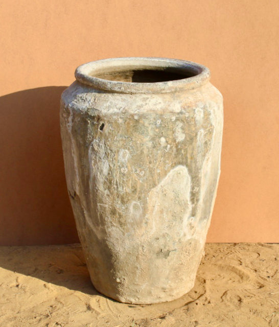 Deze prachtige antieke Indiase vaas Mawna is een absoluut uniek stuk en zal uw omgeving betoveren met zijn onmiskenbare boho charme. Dankzij het originele ontwerp past de vaas gemakkelijk in verschillende interieurs, zoals boho/vintage, Ibiza look, mediterrane interieurs.