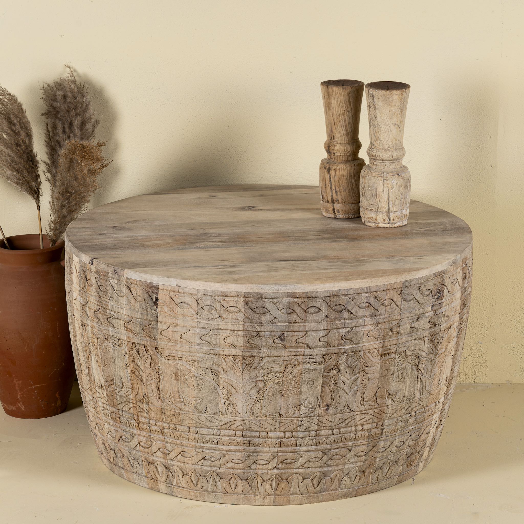 Ruhi - Mediterrane, handgesneden mango -houten salontafel 90 cm