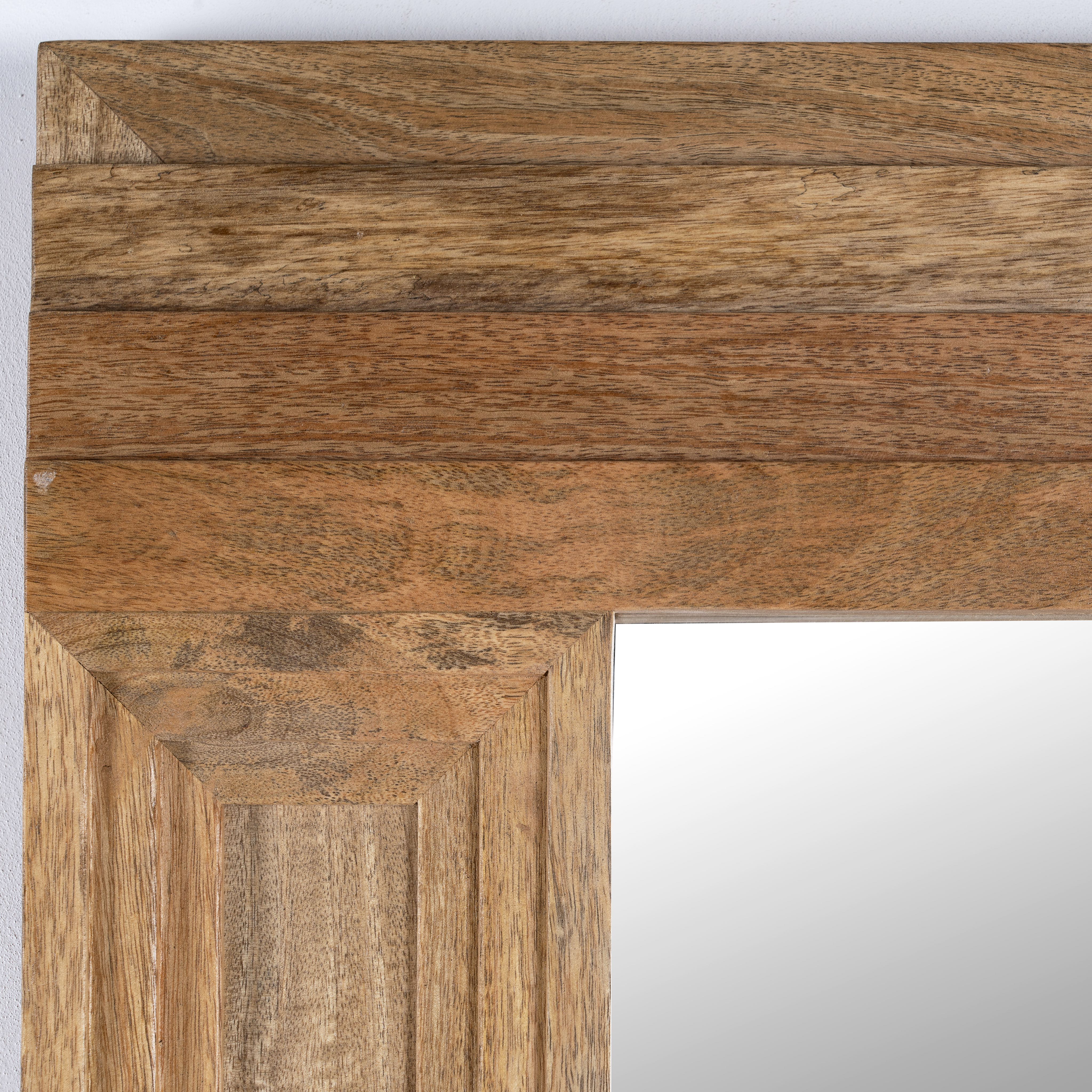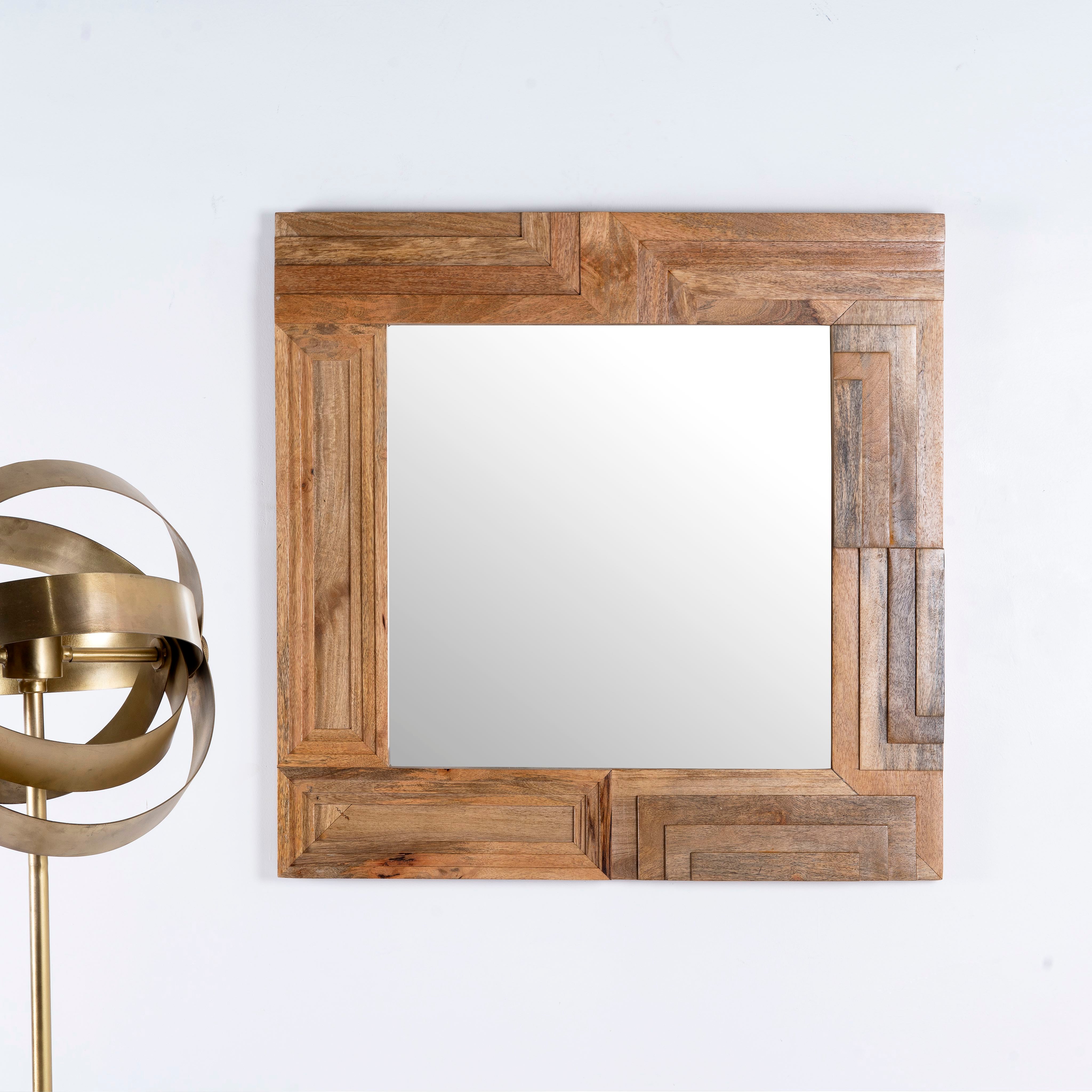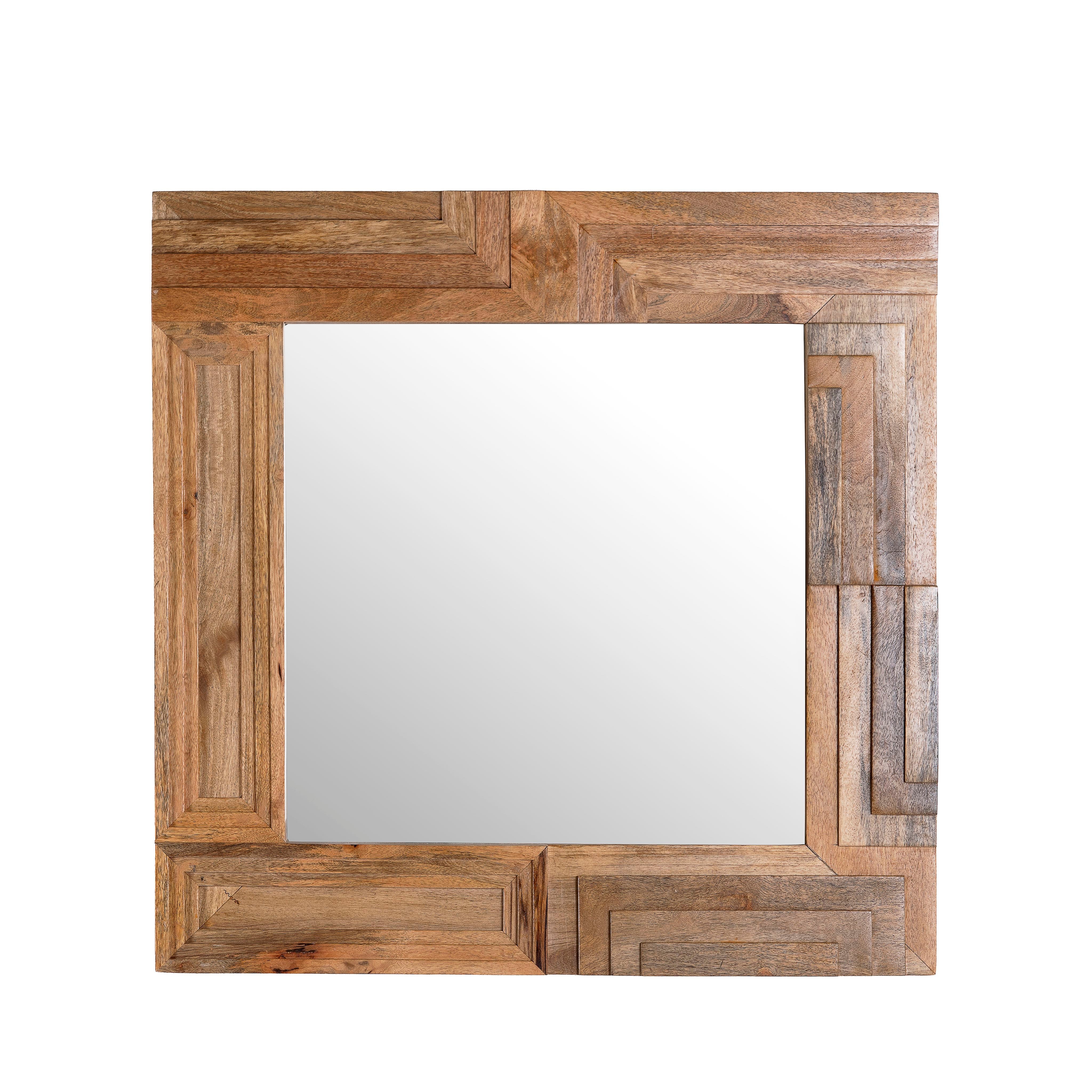 Deze stijlvolle spiegel heeft een vierkant houten ontwerp, zorgvuldig handgemaakt van natuurlijk mango hout. Het unieke patroon en het hoogwaardige vakmanschap maken het tot een opvallend stuk dat een vleugje elegantie toevoegt aan elke kamer.