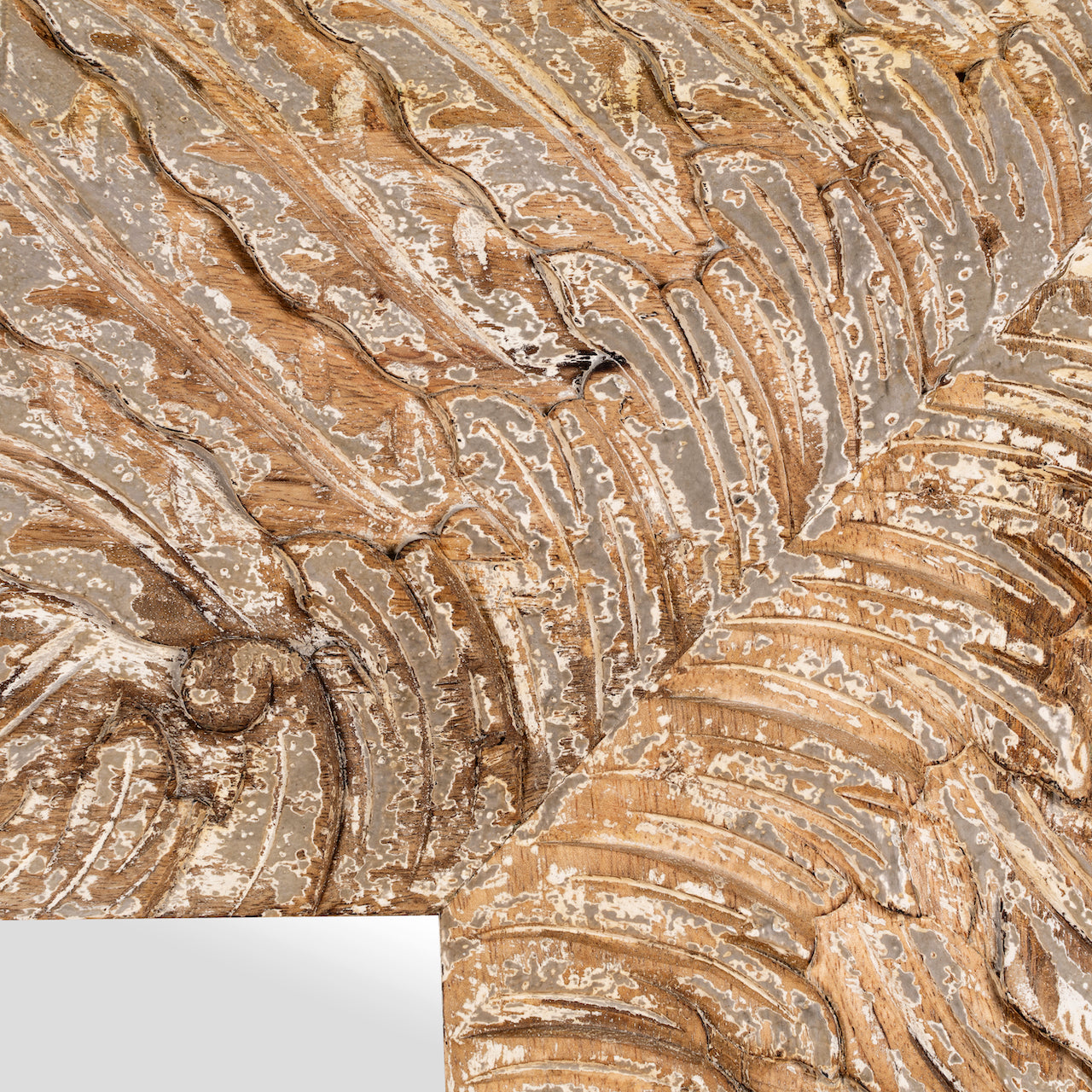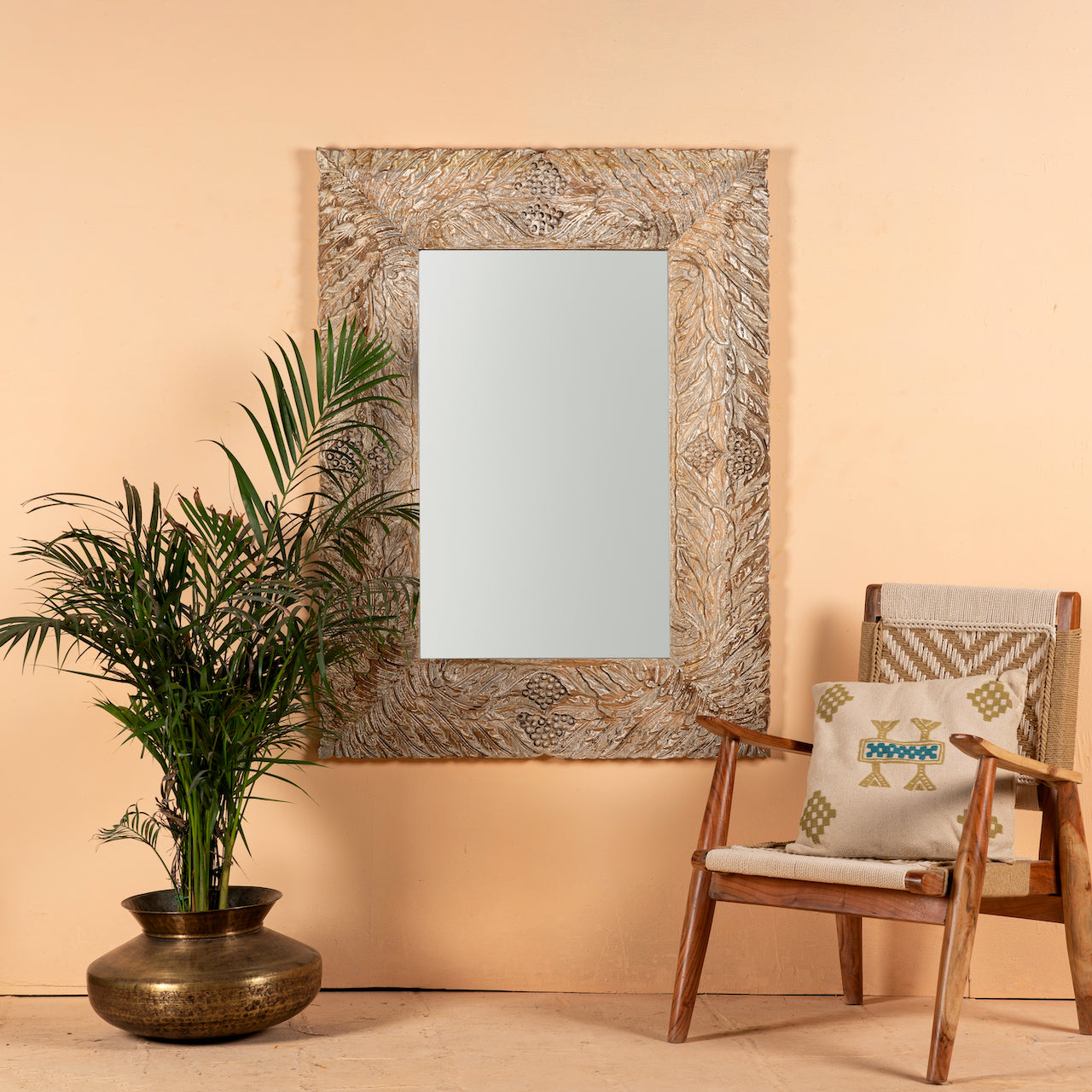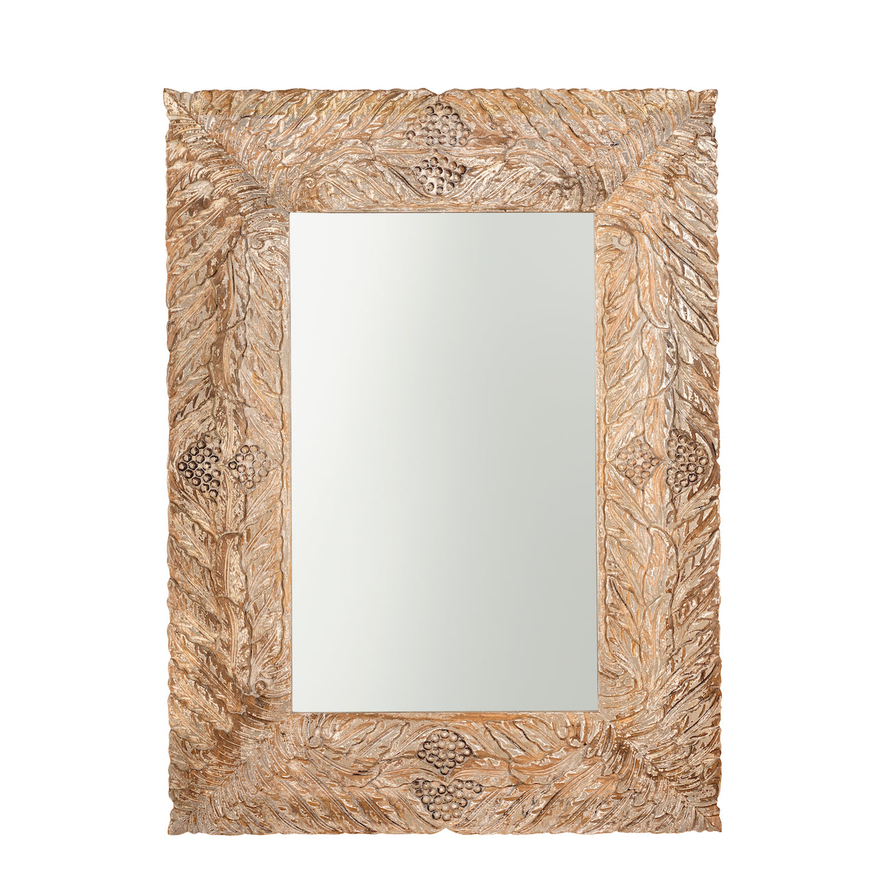 Anumati - Hand gesneden witte mango houten spiegel vintage stijl 120 cm