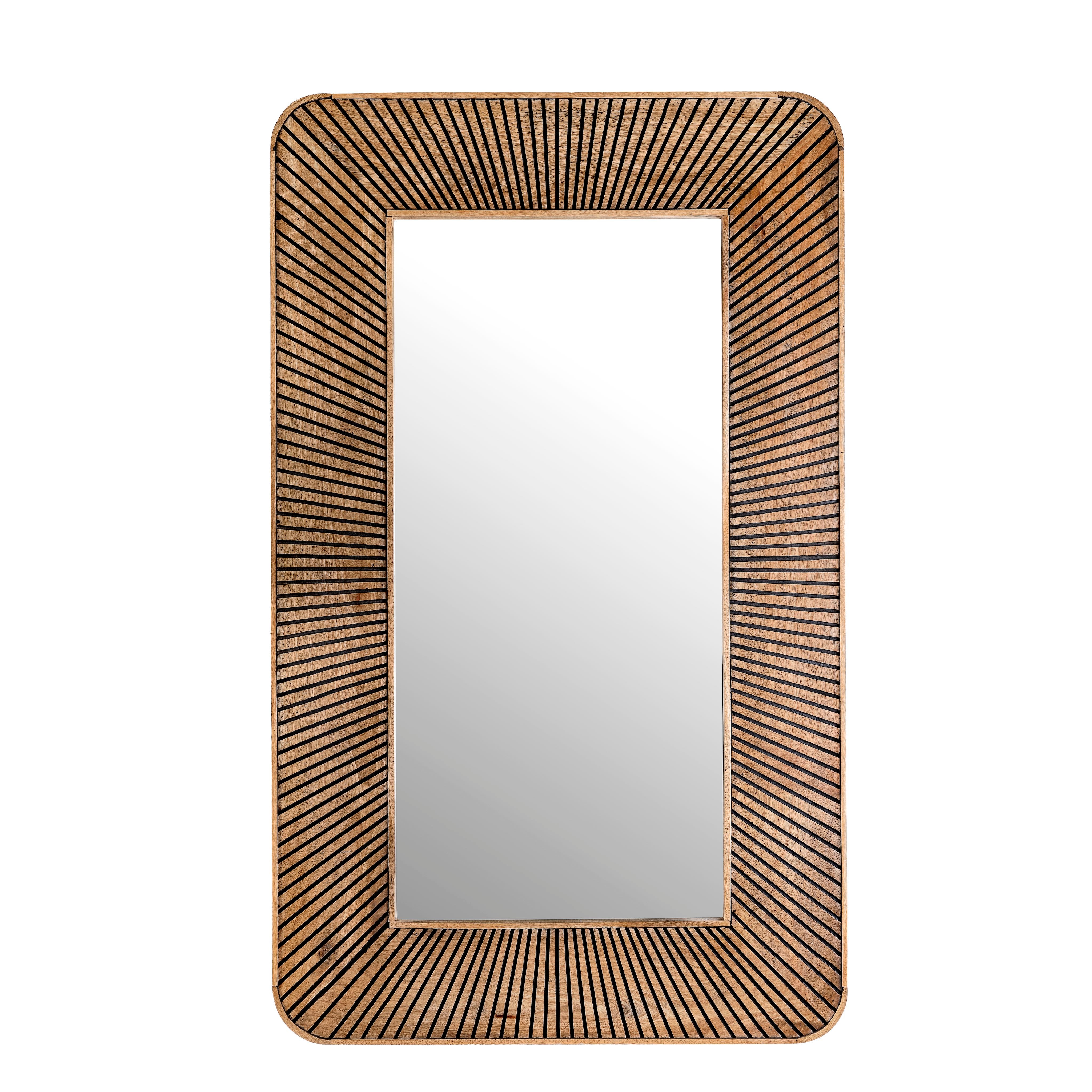Deze rechthoekige spiegel met Zarri-snit zal elke kamer betoveren met zijn buitengewone design. De natuurlijke kleur van mangohout contrasteert prachtig met de zwarte accenten.