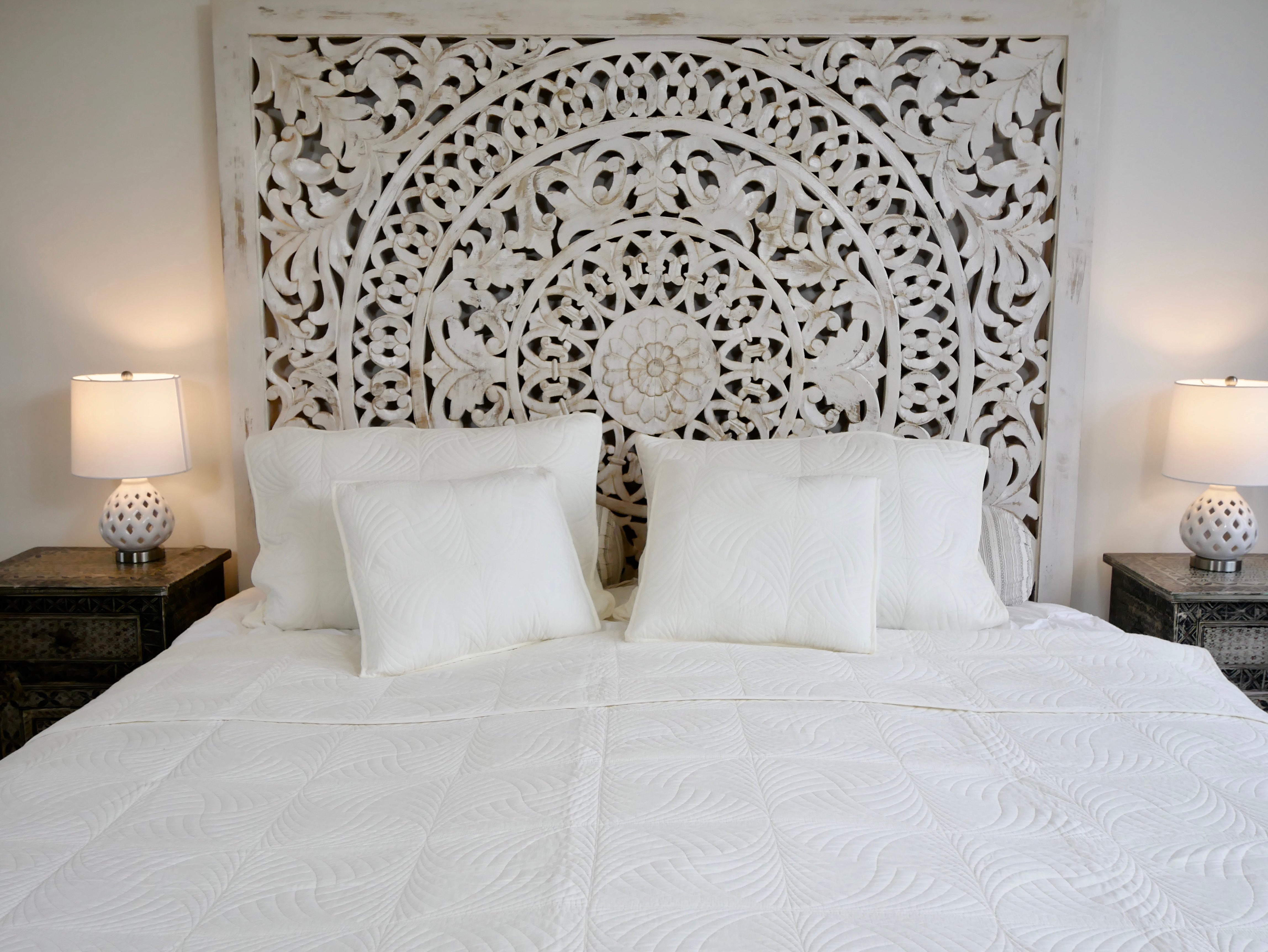 Dit bedovertrek van 100% ongebleekt natuurlijk katoen is rijkelijk geborduurd en wordt geleverd in een set van twee, bestaande uit 2 kleine en 2 grote kussenslopen.