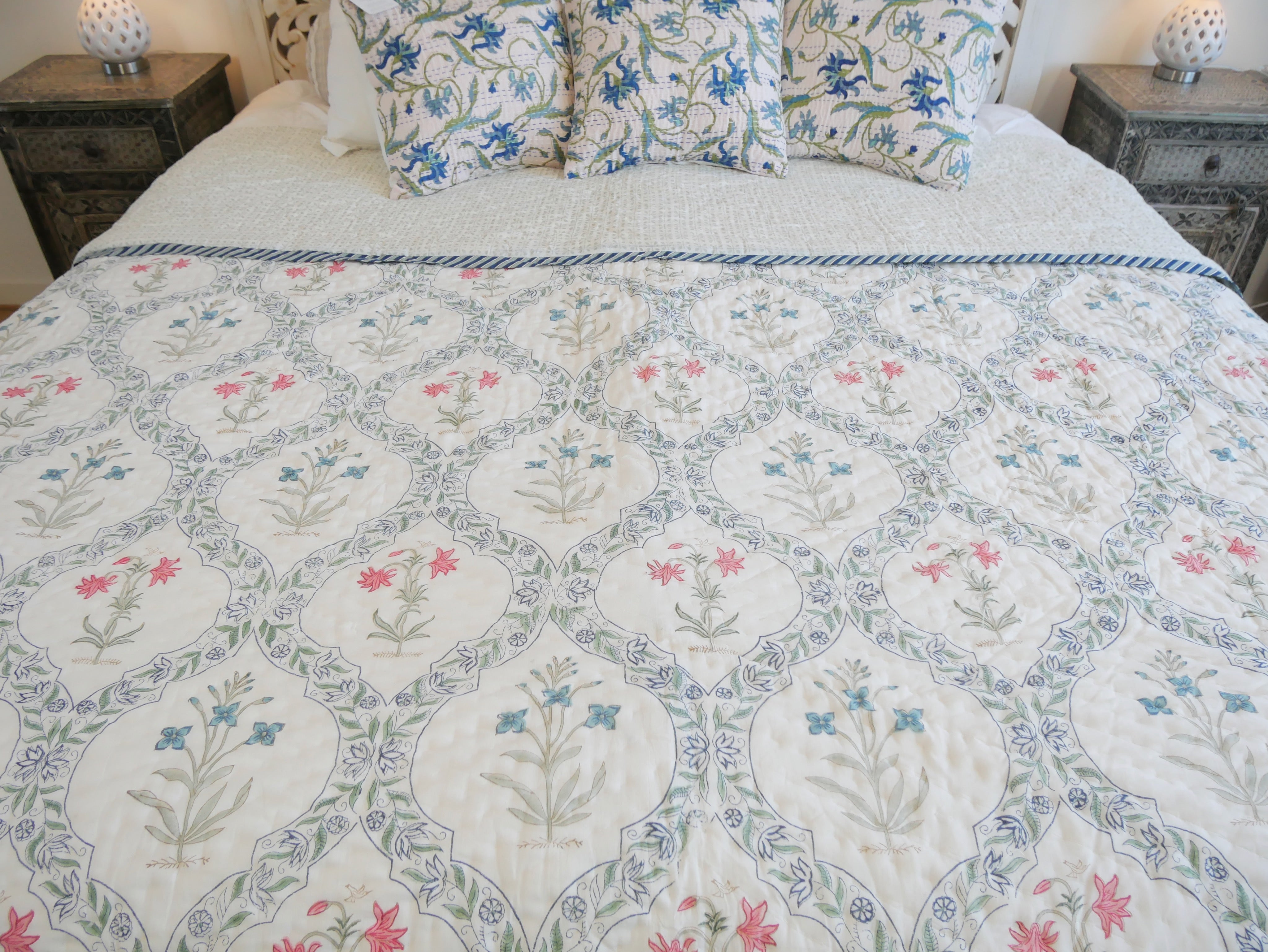 Dit met de hand genaaide en geborduurde dekbed is pure luxe voor elke slaapkamer of als sprei op de bank.