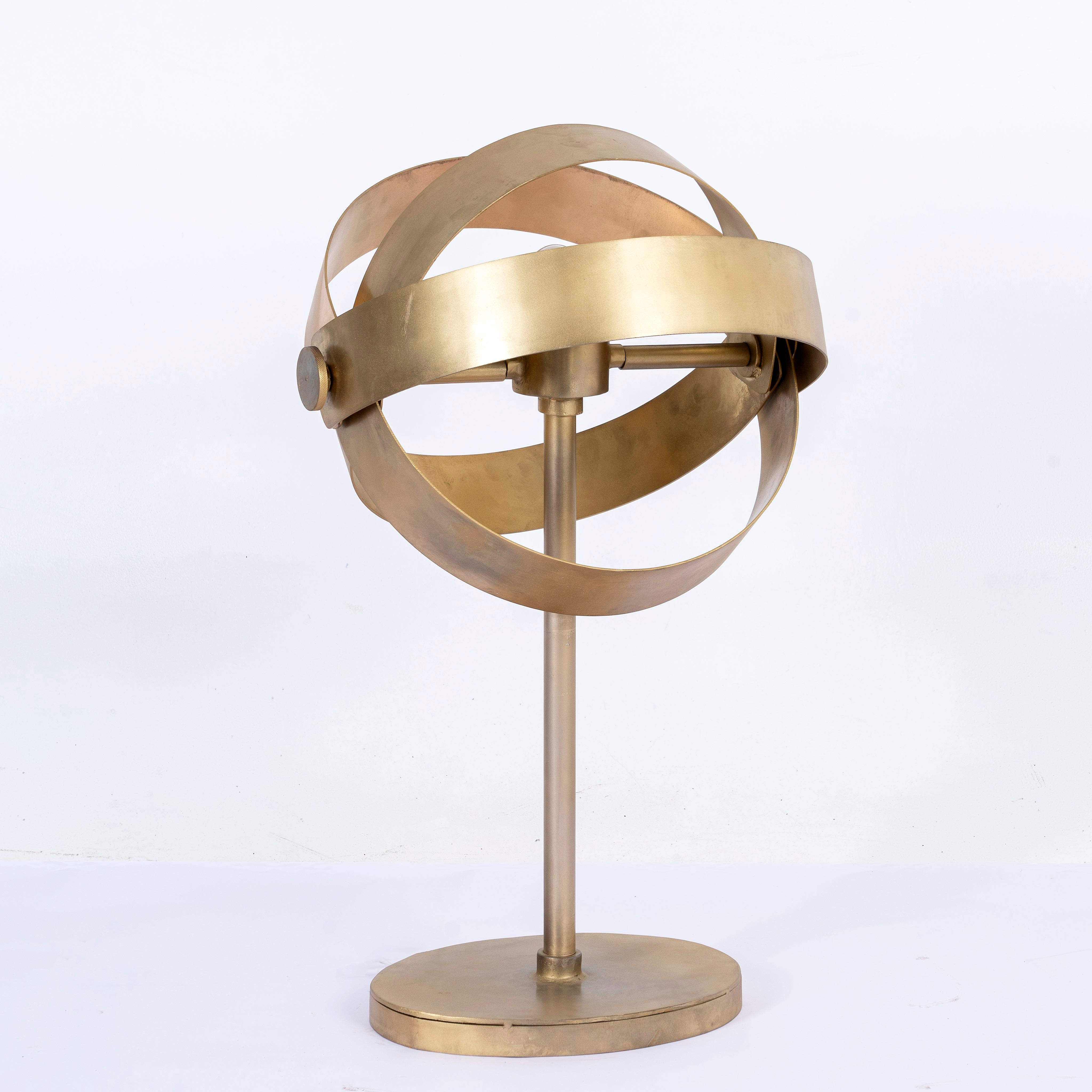 De robuuste ijzeren constructie zorgt voor duurzaamheid en stabiliteit, terwijl de messing afwerking een verfijnd contrast toevoegt, waardoor de algehele esthetiek van de lamp wordt verhoogd. Zijn grote, indrukwekkende aanwezigheid maakt hem tot een ideaal middelpunt in elke kamer, en creëert een uitnodigende sfeer met zijn warme, diffuse licht.