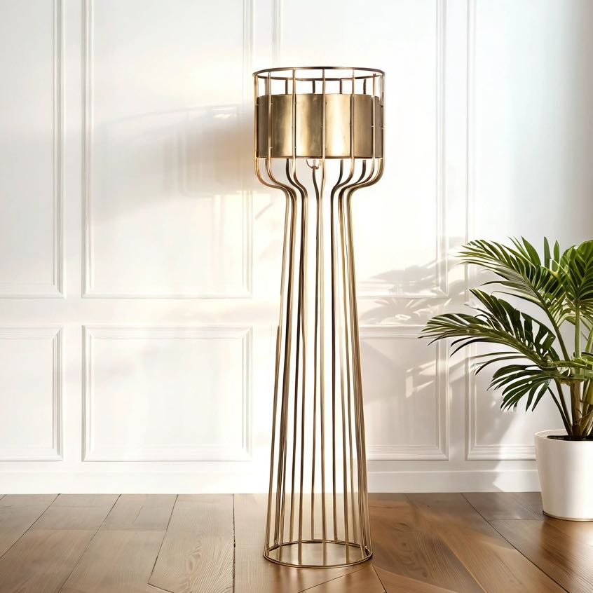 Maak kennis met onze elegante grote ronde vloerlamp Ramakant, een perfecte mix van modern design en tijdloze verfijning. Deze prachtige vloerlamp is gemaakt van hoogwaardig ijzer en heeft een strak ontwerp dat zowel stabiliteit als een eigentijdse esthetiek biedt. Het ijzeren frame is afgewerkt met een luxe messing afwerking, ook wel messing genoemd, waardoor elke ruimte een warme, weelderige glans krijgt.
