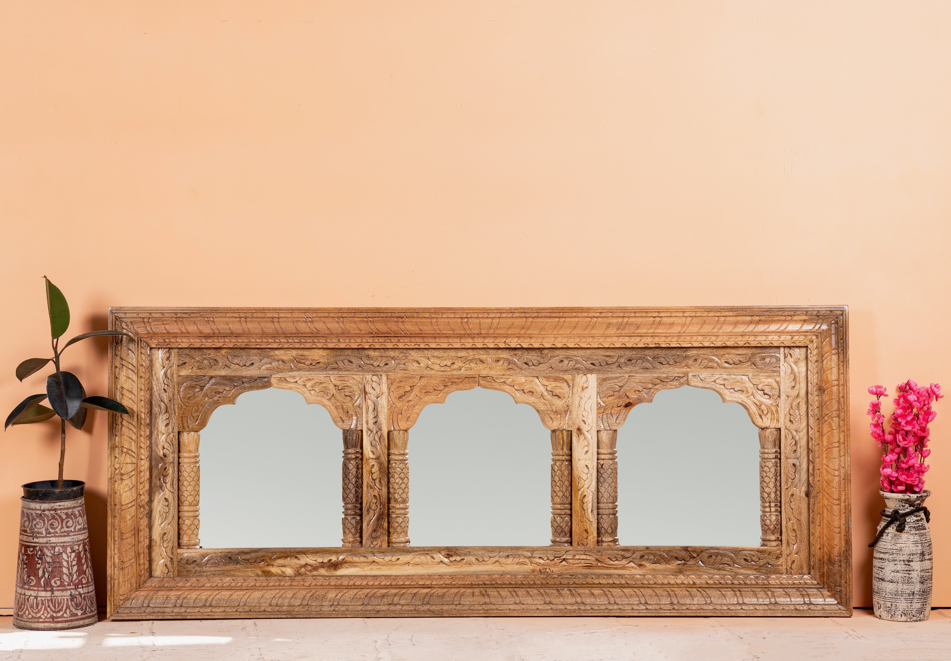De lijst van onze Sayla-spiegel is met de hand gesneden en voorzien van prachtige bloemmotieven.