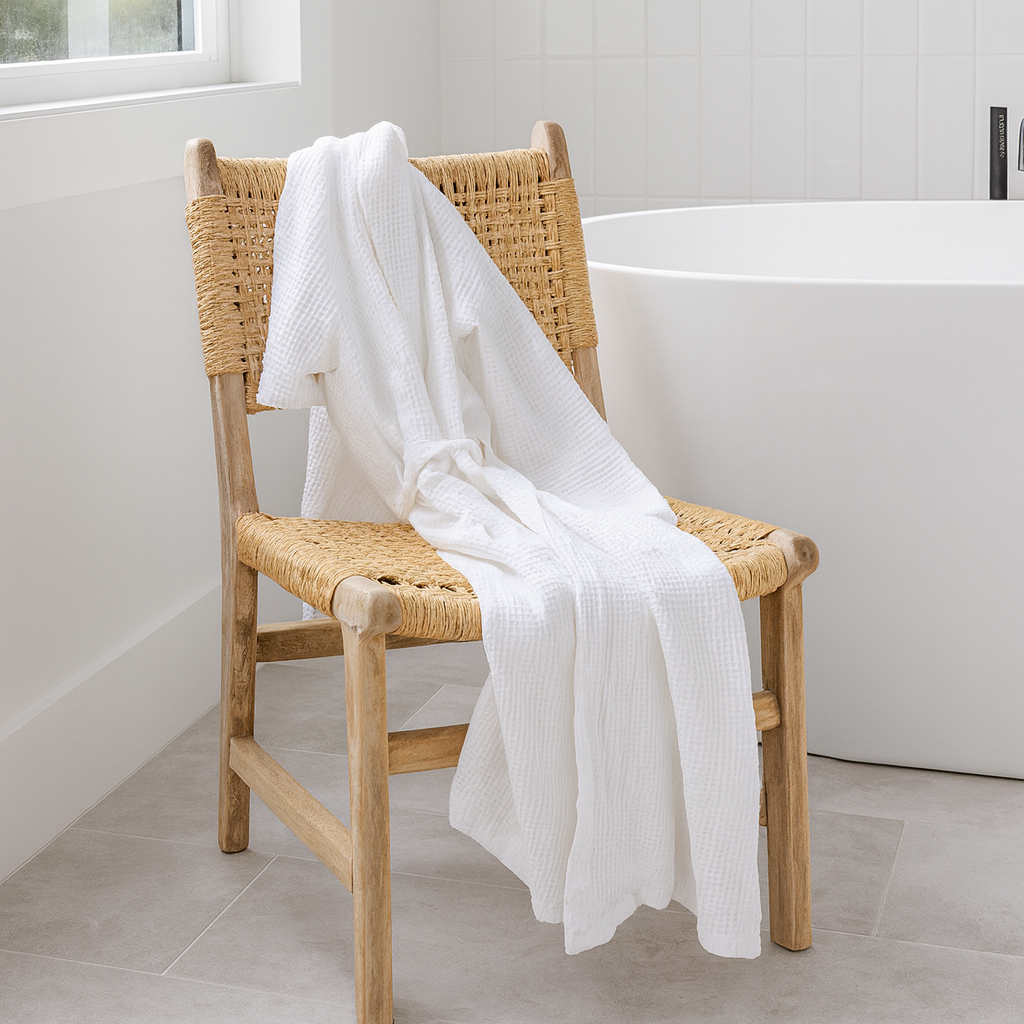Deze rijkelijk gestoffeerde Indiase De stoel van gerecycled hout trekt alle aandacht met zijn strandhout/Ibiza-stijl en handgeweven zitting. Het frame is gemaakt van gerecycled teakhout en het doek is gemaakt van natuurlijk onkruid.