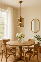 Het ontwerp van de lamp wordt verder verbeterd door de toevoeging van getinte glaspanelen. Deze panelen voegen niet alleen een vleugje eigentijdse stijl toe, maar verspreiden ook het licht, waardoor een warme en uitnodigende gloed ontstaat. Het getinte glas voegt diepte en dimensie toe, waardoor een serene ambiance ontstaat die perfect is voor elke setting. Deze houten, met messing beklede taps toelopende designlamp is ideaal voor eetkamers, woonkamers, slaapkamers of entrees, en brengt een vleugje verfijnde elegantie in elk decor.