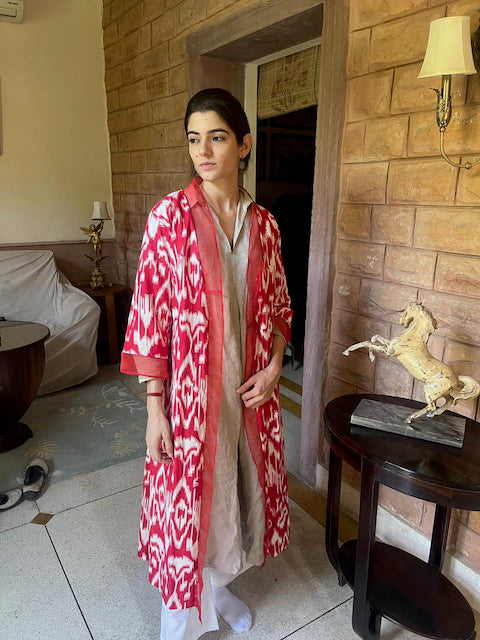 Wikkel uzelf in de levendige schoonheid van onze ochtendjassen, rechtstreeks afkomstig uit India en vervaardigd van 100% katoen. Elke badjas heeft een verscheidenheid aan kleuren en ontwerpen, waarbij traditionele Rajasthani-patronen worden gecombineerd met moderne bloemenmotieven. Deze badjassen zijn niet alleen een bewijs van uitzonderlijk vakmanschap, maar ook een viering van cultureel erfgoed en hedendaagse stijl. Ideaal om in te loungen of om een exotische touch aan uw ochtendroutine toe te voegen, onze badjassen beloven comfort en elegantie in elke draad.