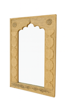 This tall wall mirror, part of our curated collection of vintage home accessories, is crafted from an old teak wood window frame, subtly sandblasted to reveal its natural grain and aged character. The design is defined by its clean lines and understated floral carvings, lending a refined Mediterranean touch without excess ornamentation.