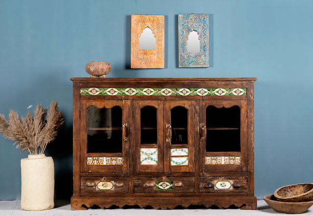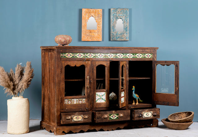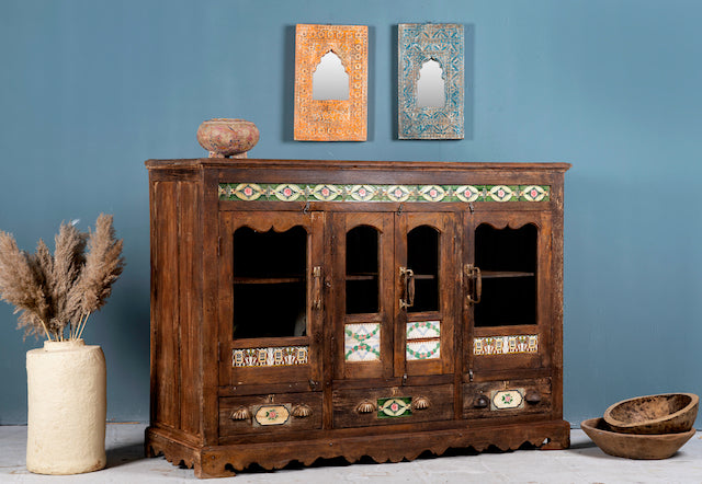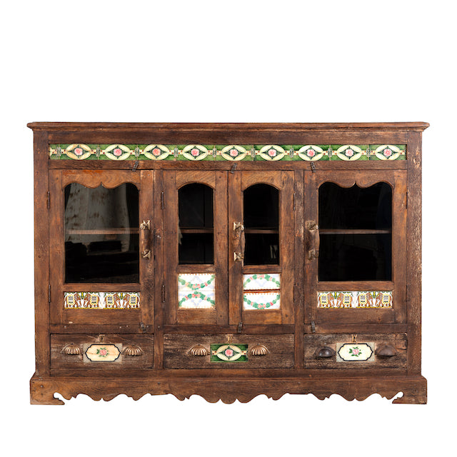 Una - Gerenoveerde antieke Indiase showcase met keramiek 156 cm